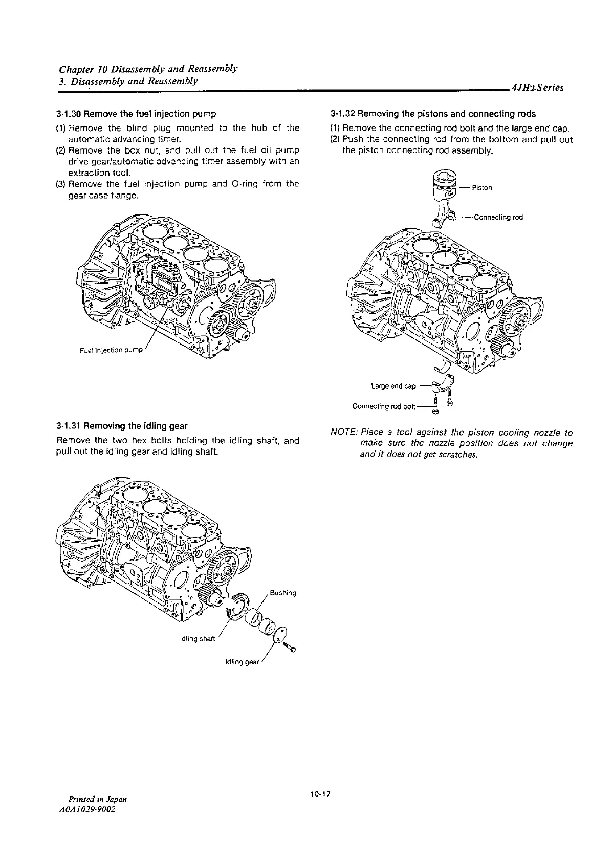 Yanmar 4JH2-DTE - Removing the Fuel Injection Pump; Removing the Idling Gear; Removing the Pistons and Connecting Rods