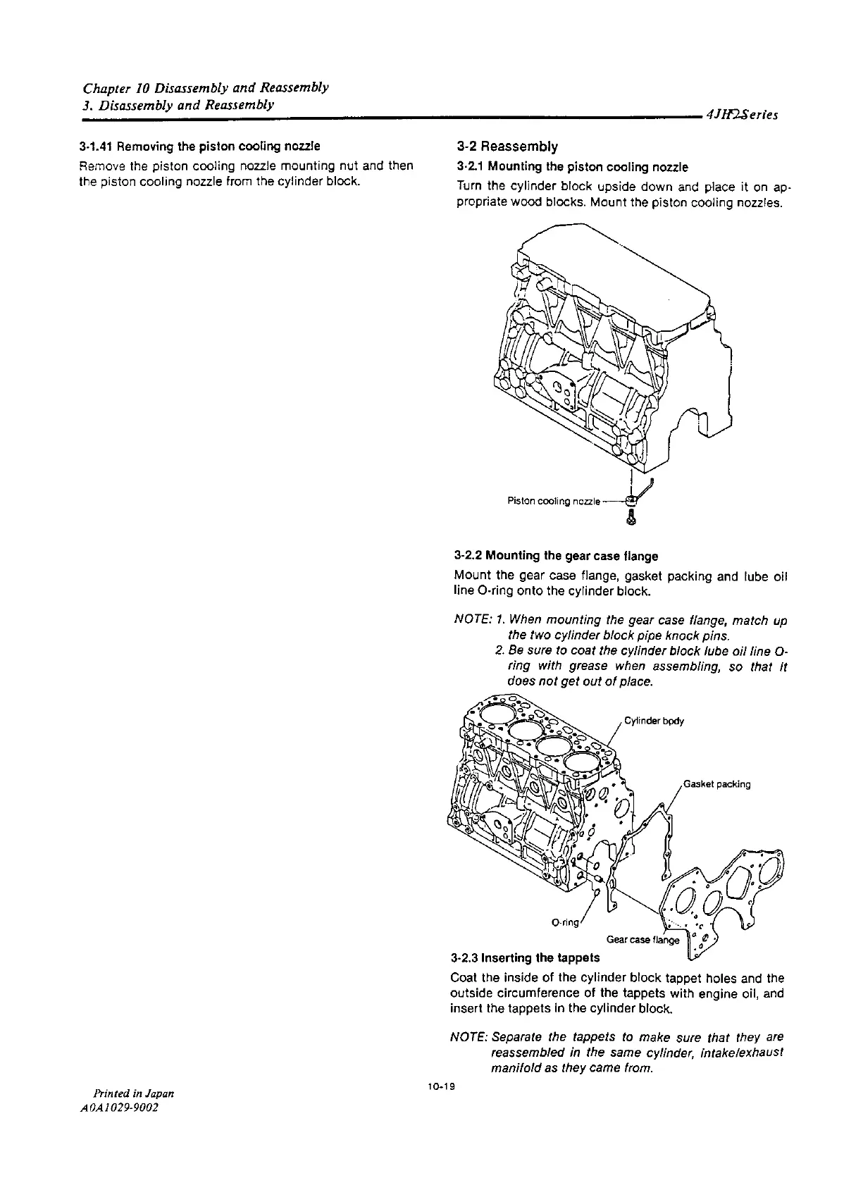 Yanmar 4JH2-DTE - Removing;Mounting the Piston Cooling Nozzle; Mounting the Gear Case Flange; Inserting the Tappets