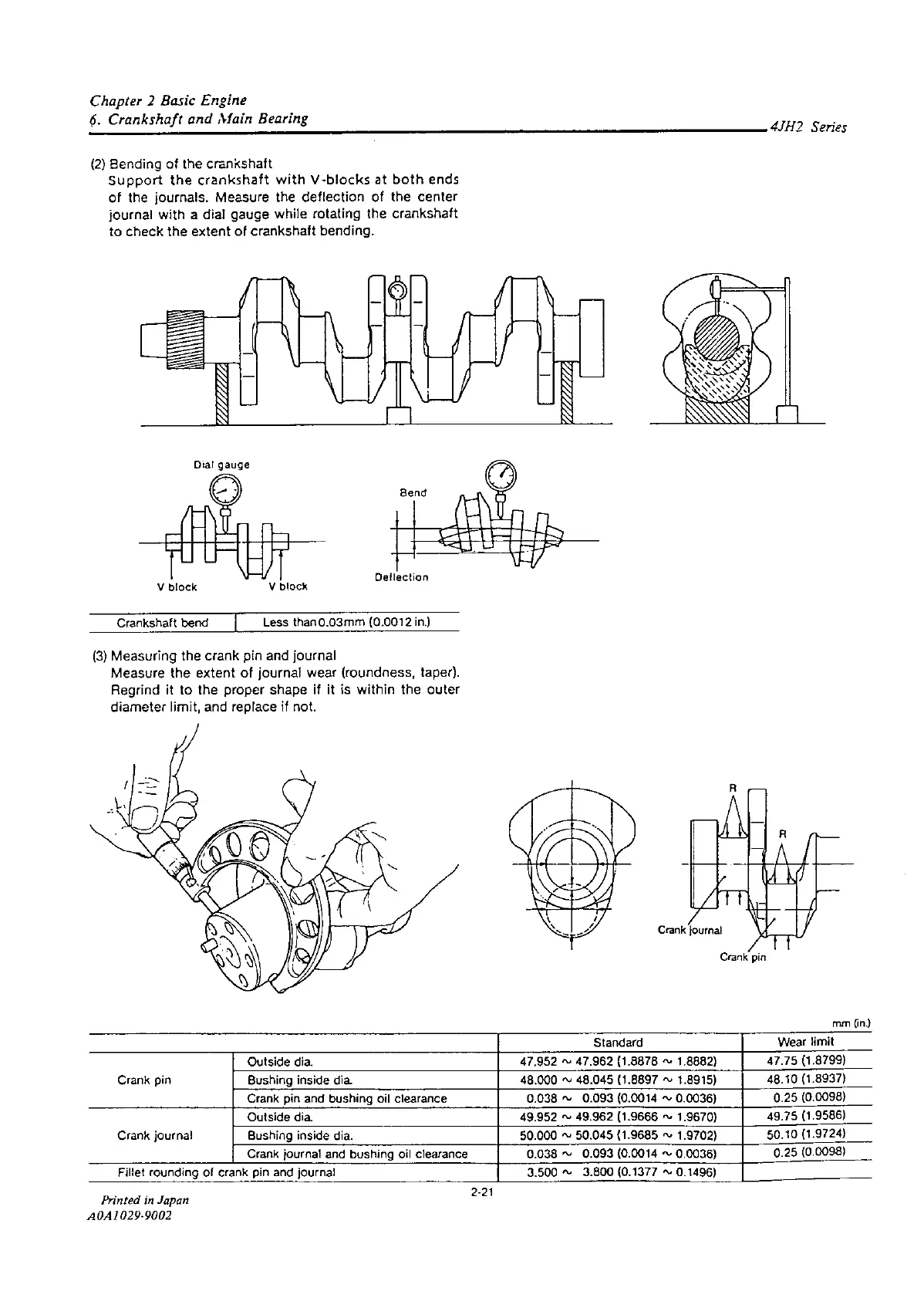 Yanmar 4JH2-DTE - Bending of the Crankshaft; Measuring the Crank Pin and Journal