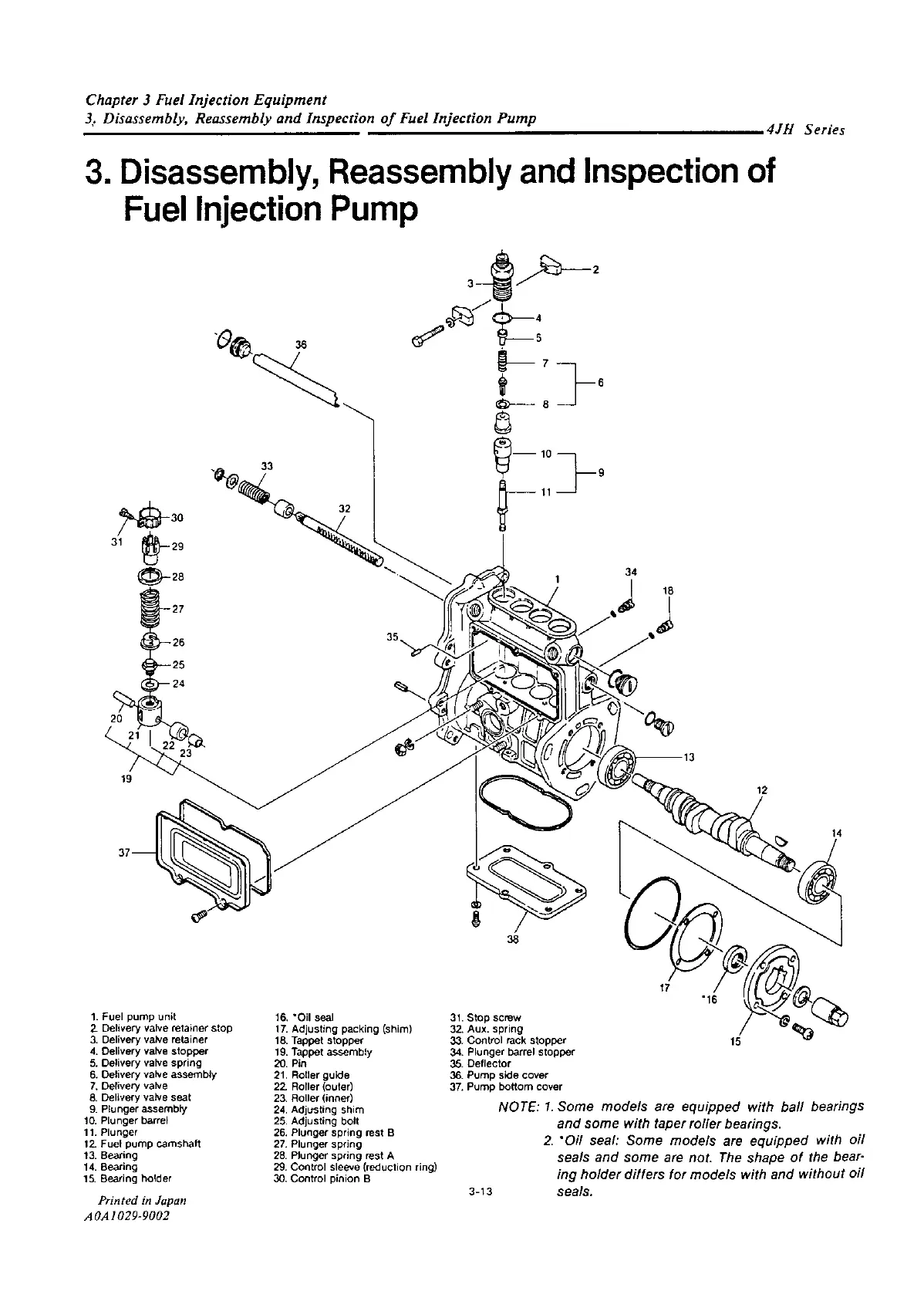 Yanmar 4JH2-DTE - Disassembly, Reassembly and Inspection of Fuel Injection Pump
