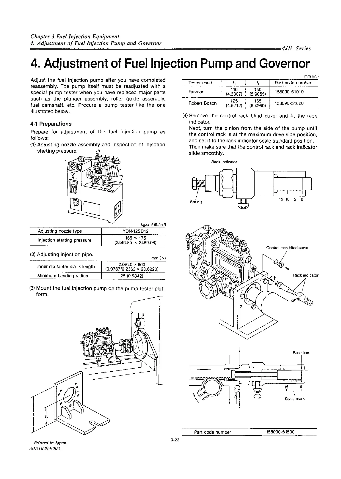 Yanmar 4JH2-DTE - Adjustment of Fuel Injection Pump and Governor