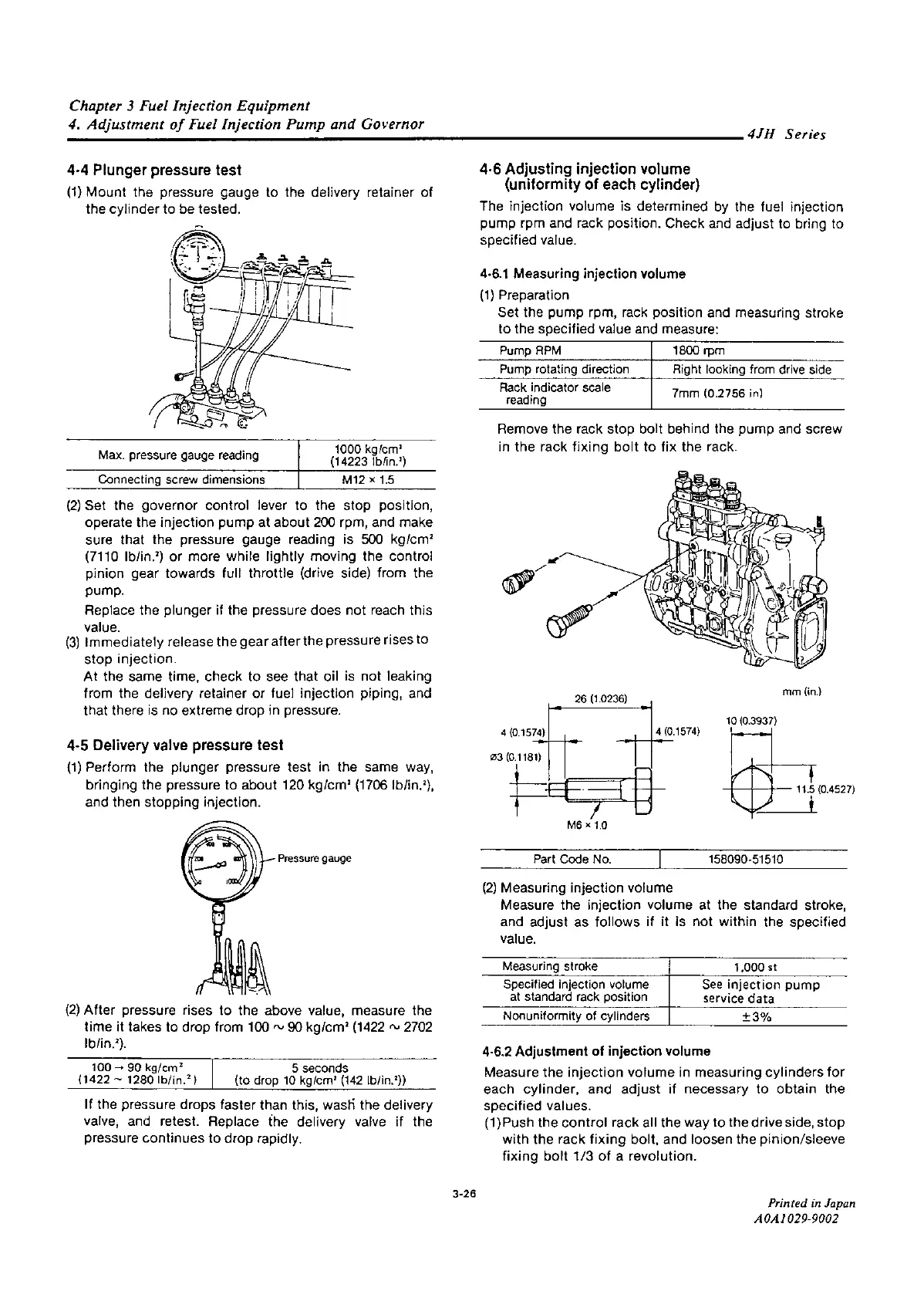 Yanmar 4JH2-DTE - Plunger Pressure Test; Delivery Valve Pressure Test; Measuring;Adjustment of Injection Volume
