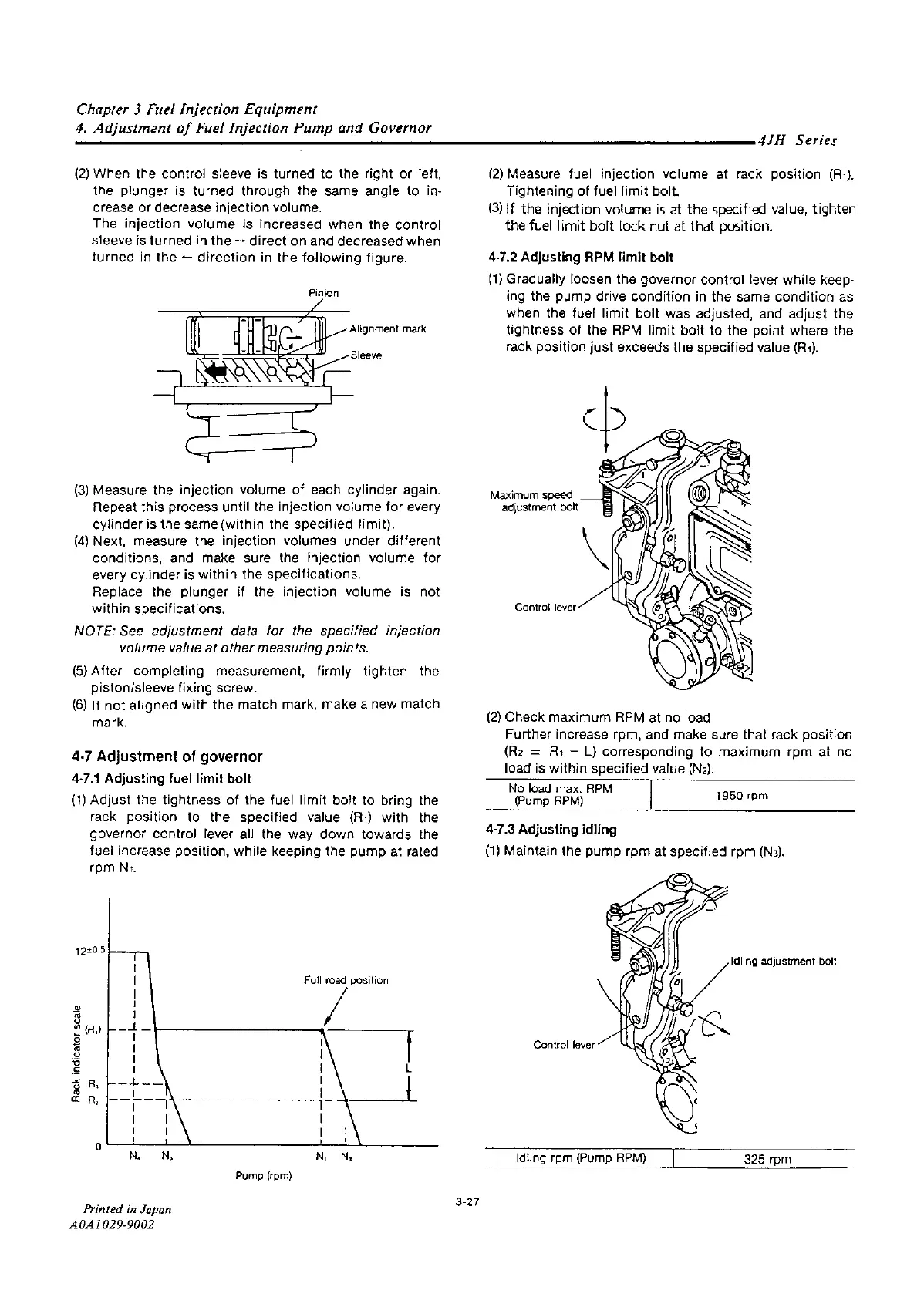 Yanmar 4JH2-DTE - Adjusting Fuel;Rpm Limit Bolt; Adjusting Idling
