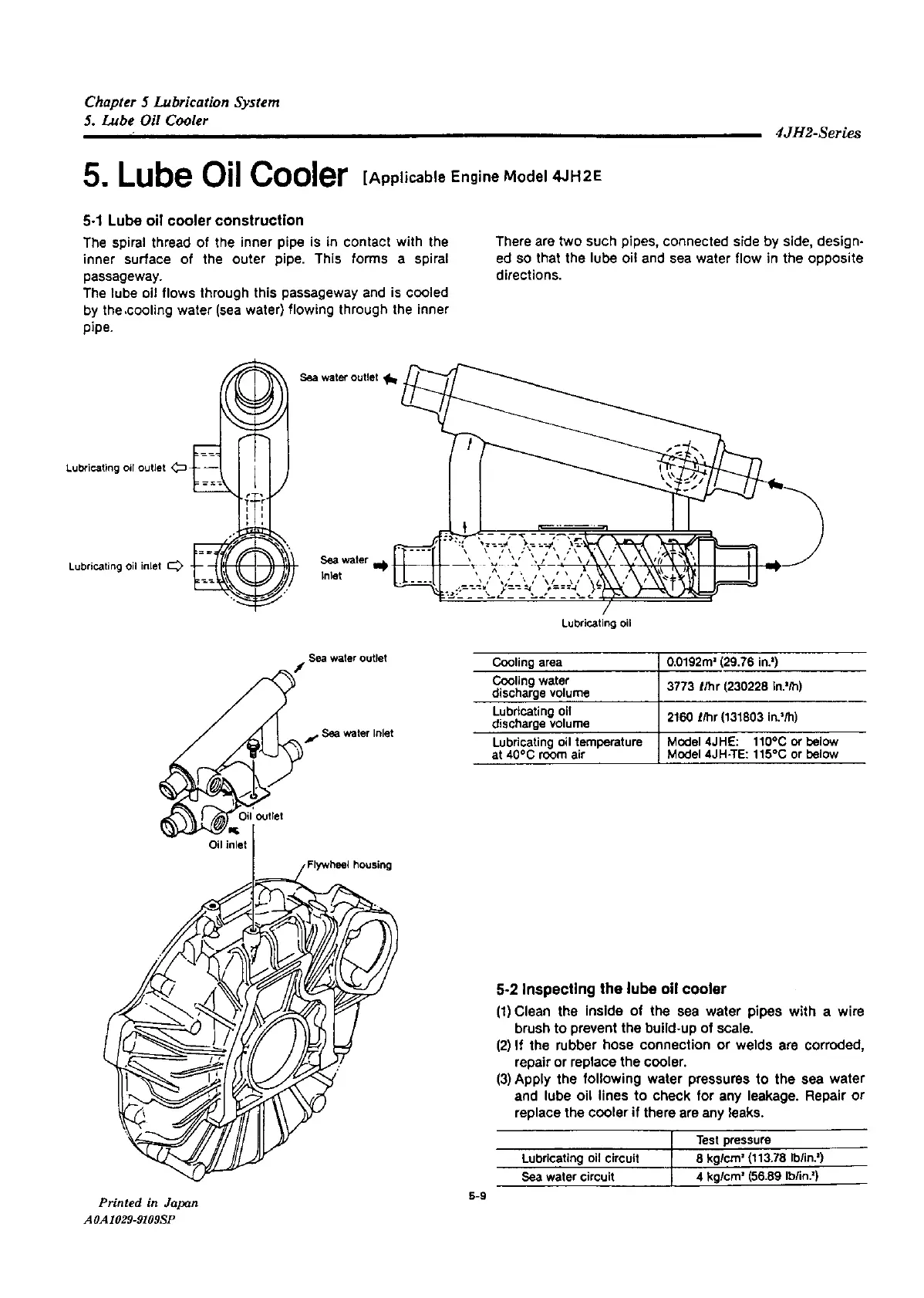 Yanmar 4JH2-TE - Lube Oil Cooler Construction 4 JH2 E; Inspecting the Lube Oil Cooler 4 JH2 E