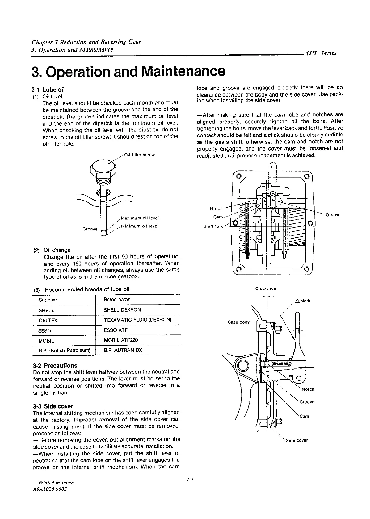 Yanmar 4JH2-TE - Lube Oil; Precautions; Side Cover
