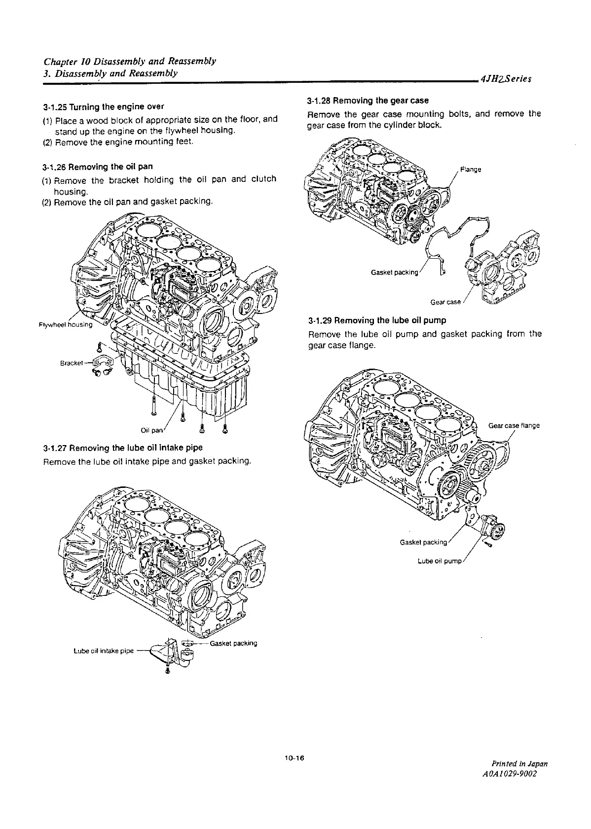 Yanmar 4JH2-TE - Turning the Engine over; Removing the Oil Pan; Removing the Lube Oil Pipe;Intake Pipe; Removing the Gear Case