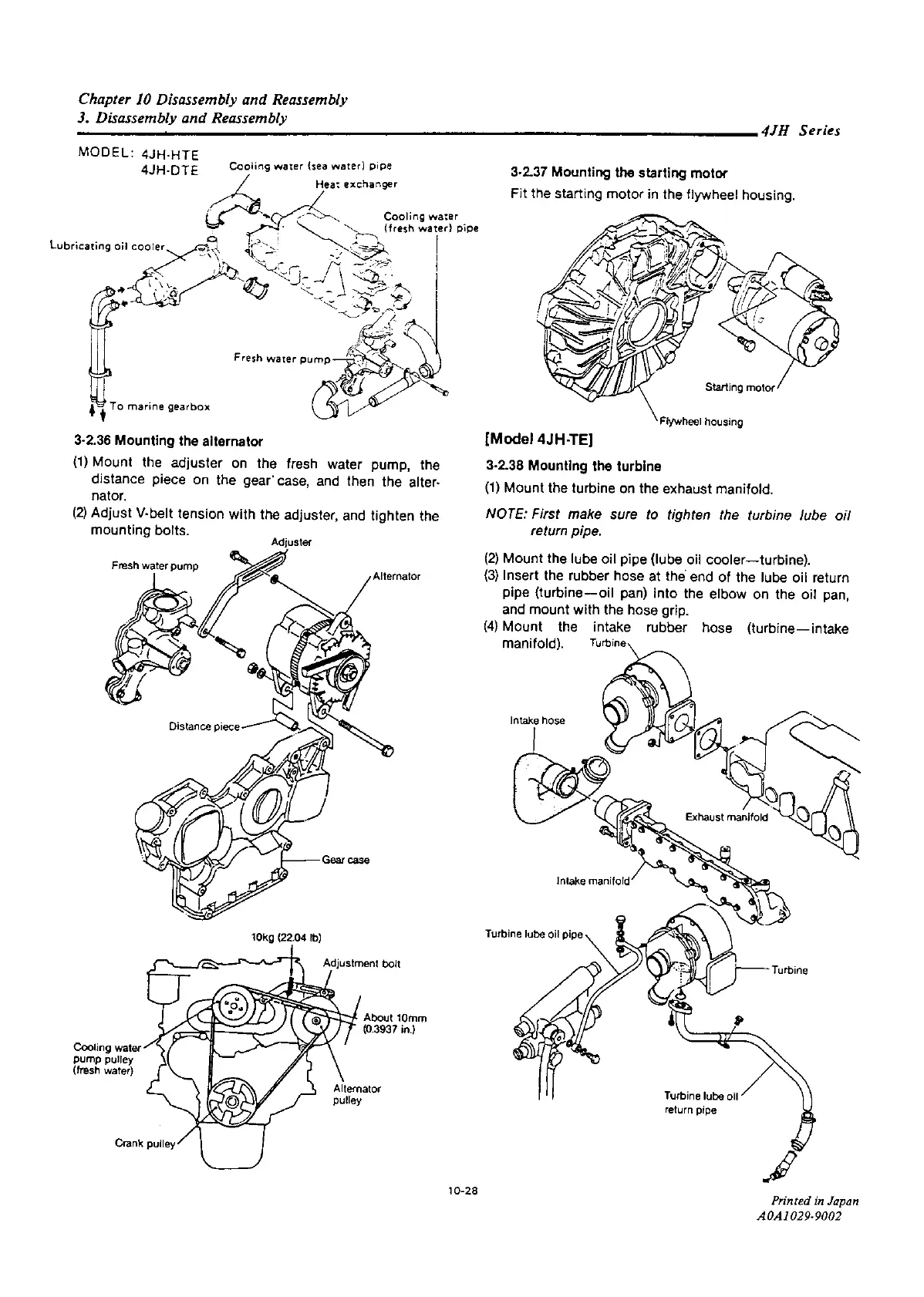 Yanmar 4JH2-TE - Mounting the Alternator; Mounting the Starting Motor; Mounting the Turbine