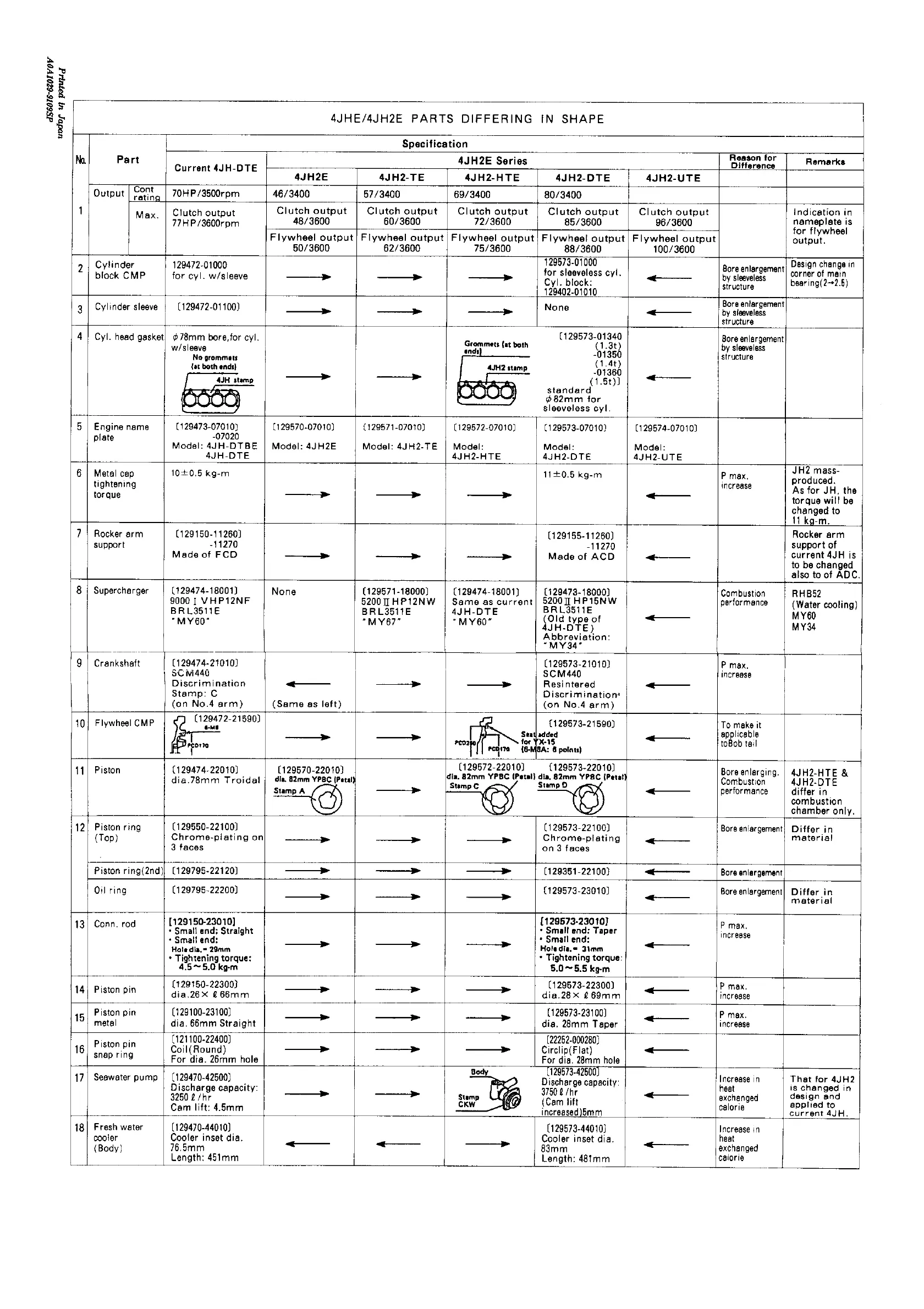 Yanmar 4JH2-TE - 4 JHE;4 JH2 E Parts Differing in Shape