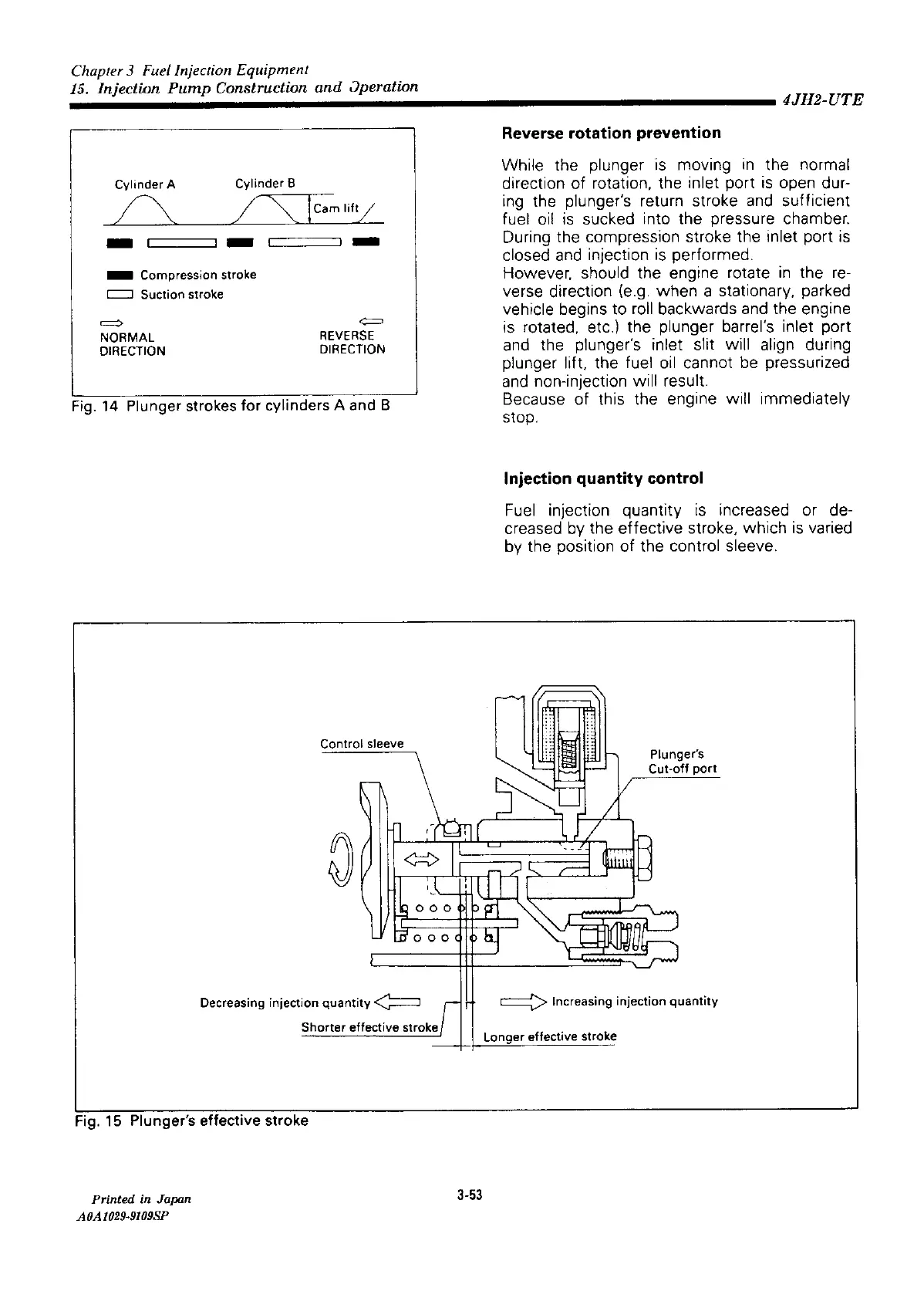 Yanmar 4JH2E - Reverse Rotation Prevention; Injection Quantity Control; Plunger Strokes for Cylinders a and B; Plungers Effective Stroke