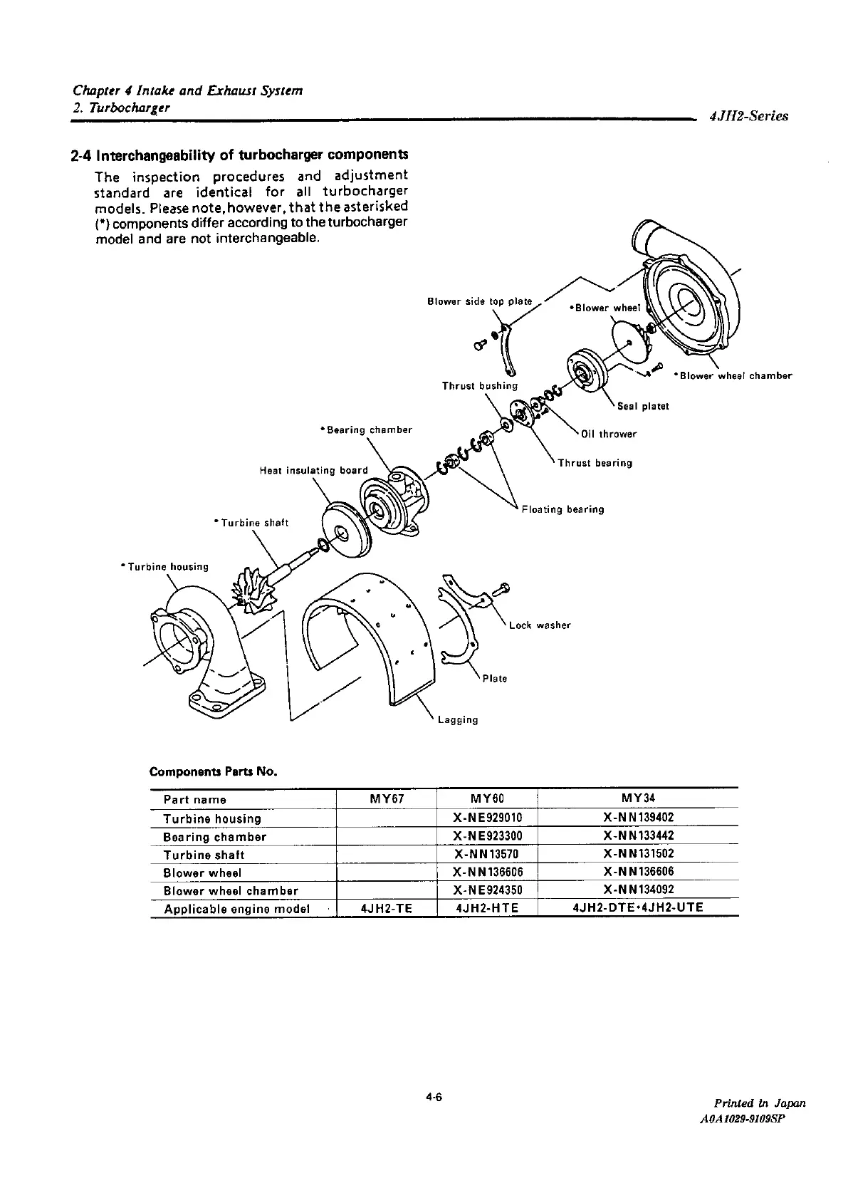 Yanmar 4JH2E - Interchangeability of Turbocharger Components; Components Parts no