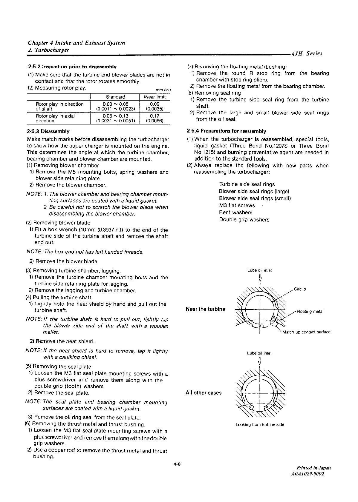 Yanmar 4JH2E - Inspection Prior to Disassembly; Disassembly; Preparations for Reassembly