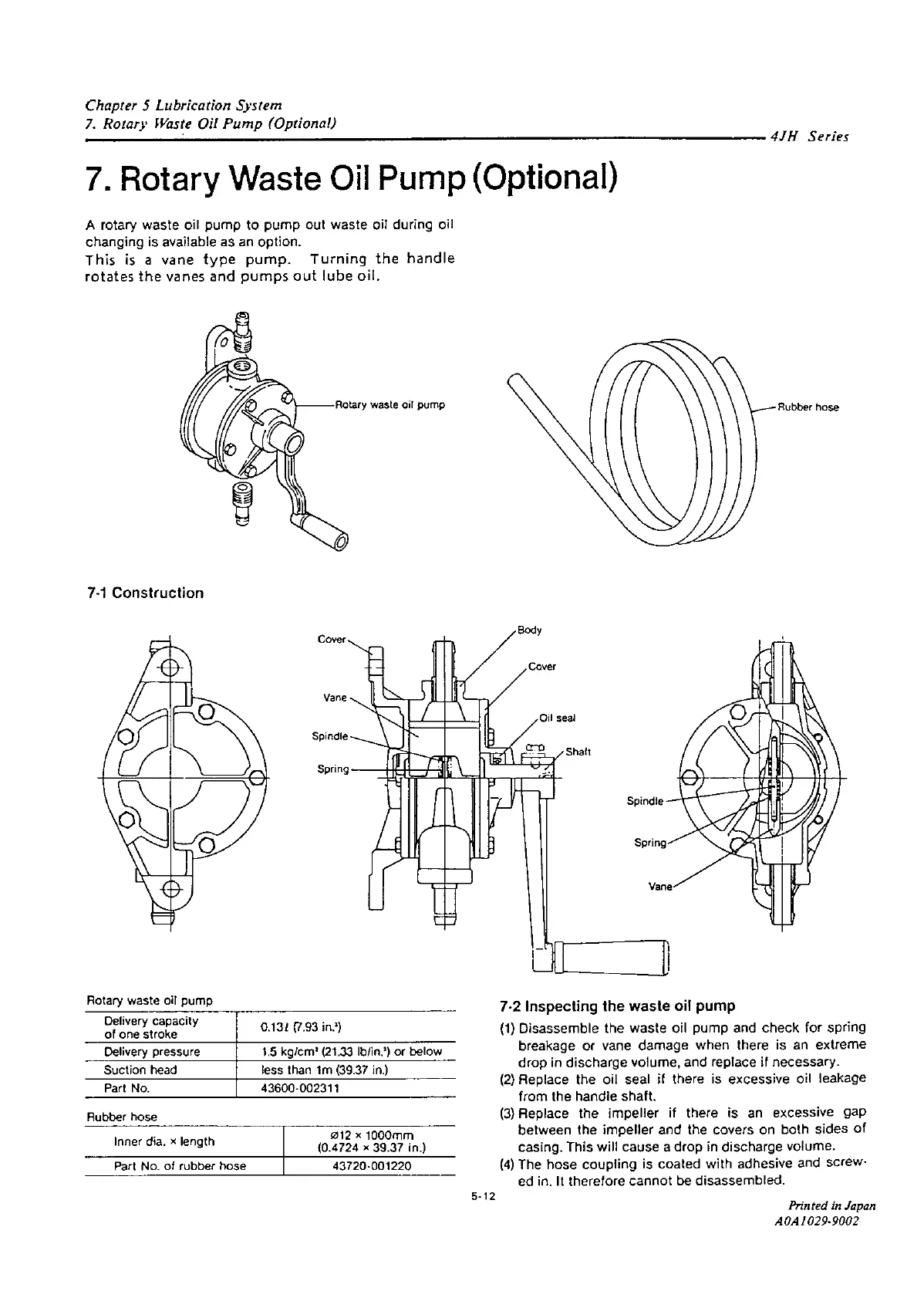 Yanmar 4JH2E - Rotary Waste Oil Pump Construction;Inspection