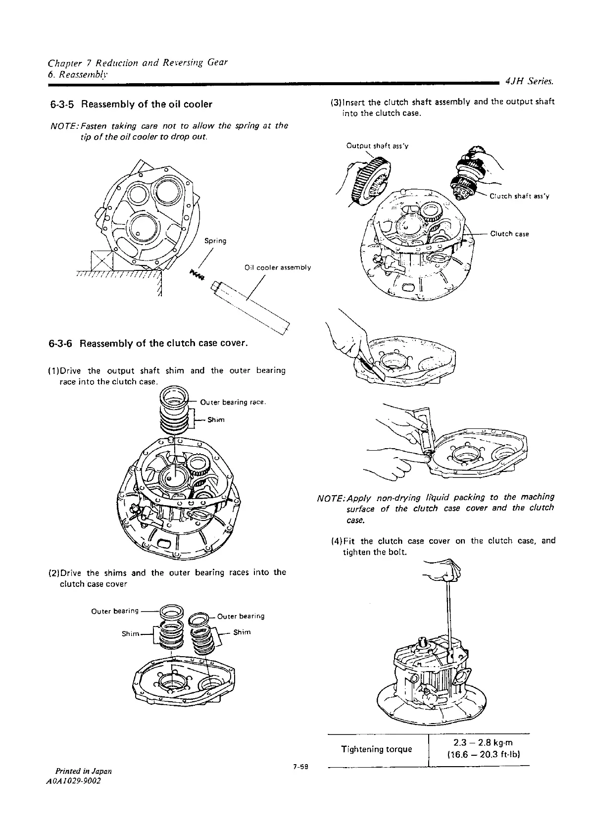 Yanmar 4JH2E - Reassembly of the Oil Cooler; Reassembly of the Clutch Case Cover