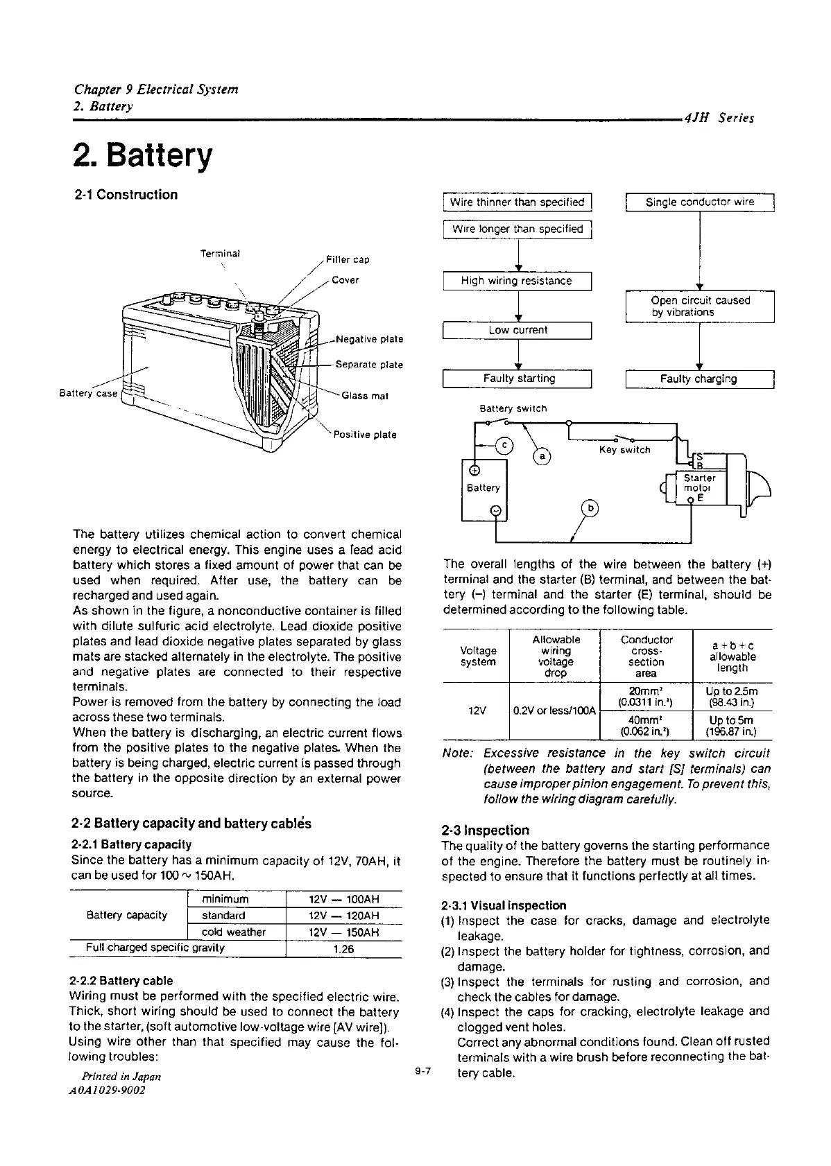 Yanmar 4JH2E - Battery Construction;Capacity;Cable; Visual Inspection