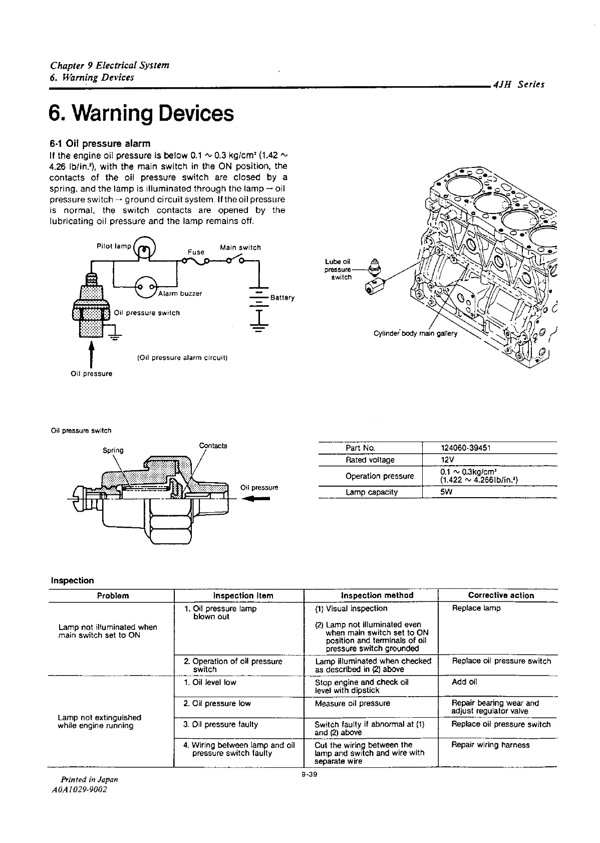 Yanmar 4JH2E - Oil Pressure Alarm;Inspection
