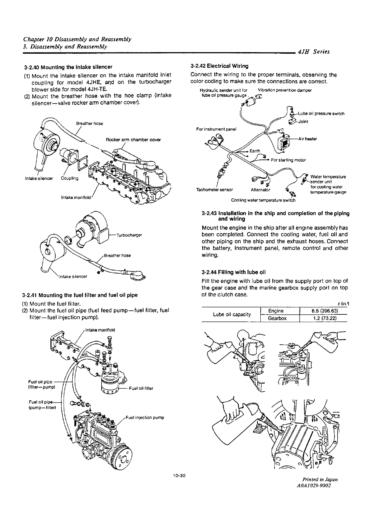 Yanmar 4JH2E - Mounting the Intake Silencer; Mounting the Fuel Filter and Fuel Oil Pipe; Electrical Wiring; Installation in the Ship and Completion of the Piping and Wiring