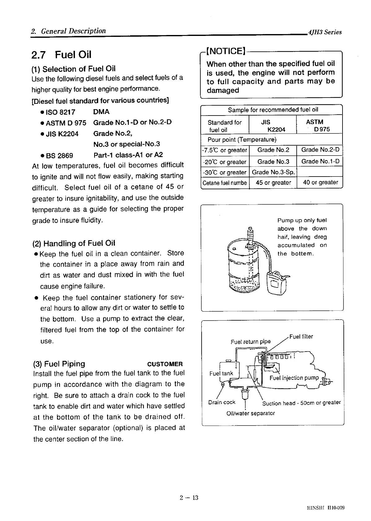 Yanmar 4JH3-DTE - Selection;Handling of Fuel Oil; Fuel Piping