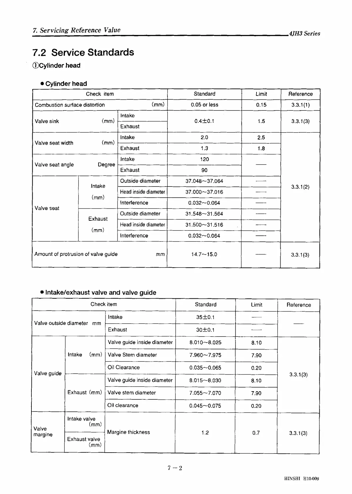 Yanmar 4JH3-DTE - Cylinder Head Service Standards; Intake;Exhaust Valve and Valve Guide Service Standards