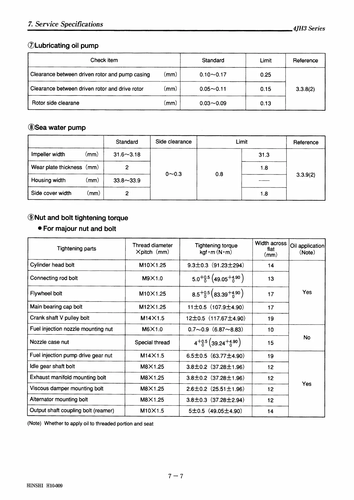 Yanmar 4JH3-DTE - Lubricating Oil;Sea Water Pump Service Standards; Nut and Bolt Tightening Torque Service Standards