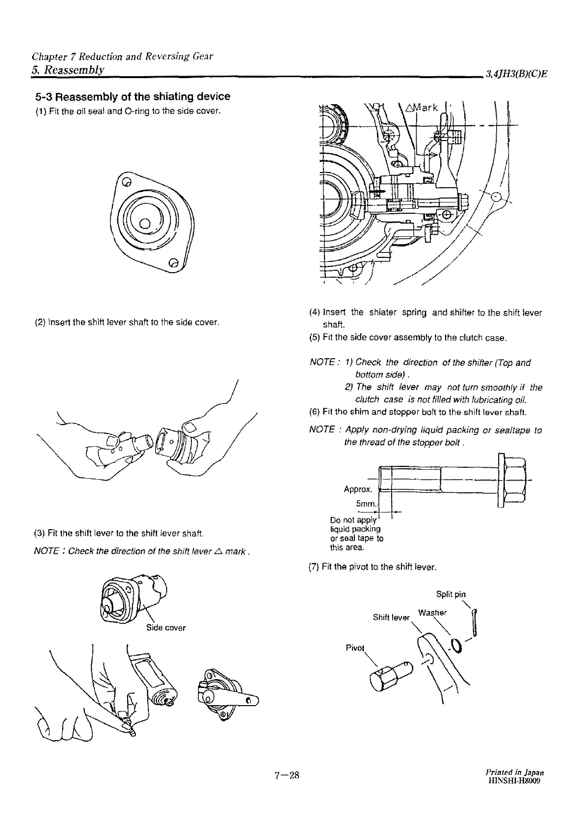 (6) Fit the shim and stopper bolt to the shift lever shaft.