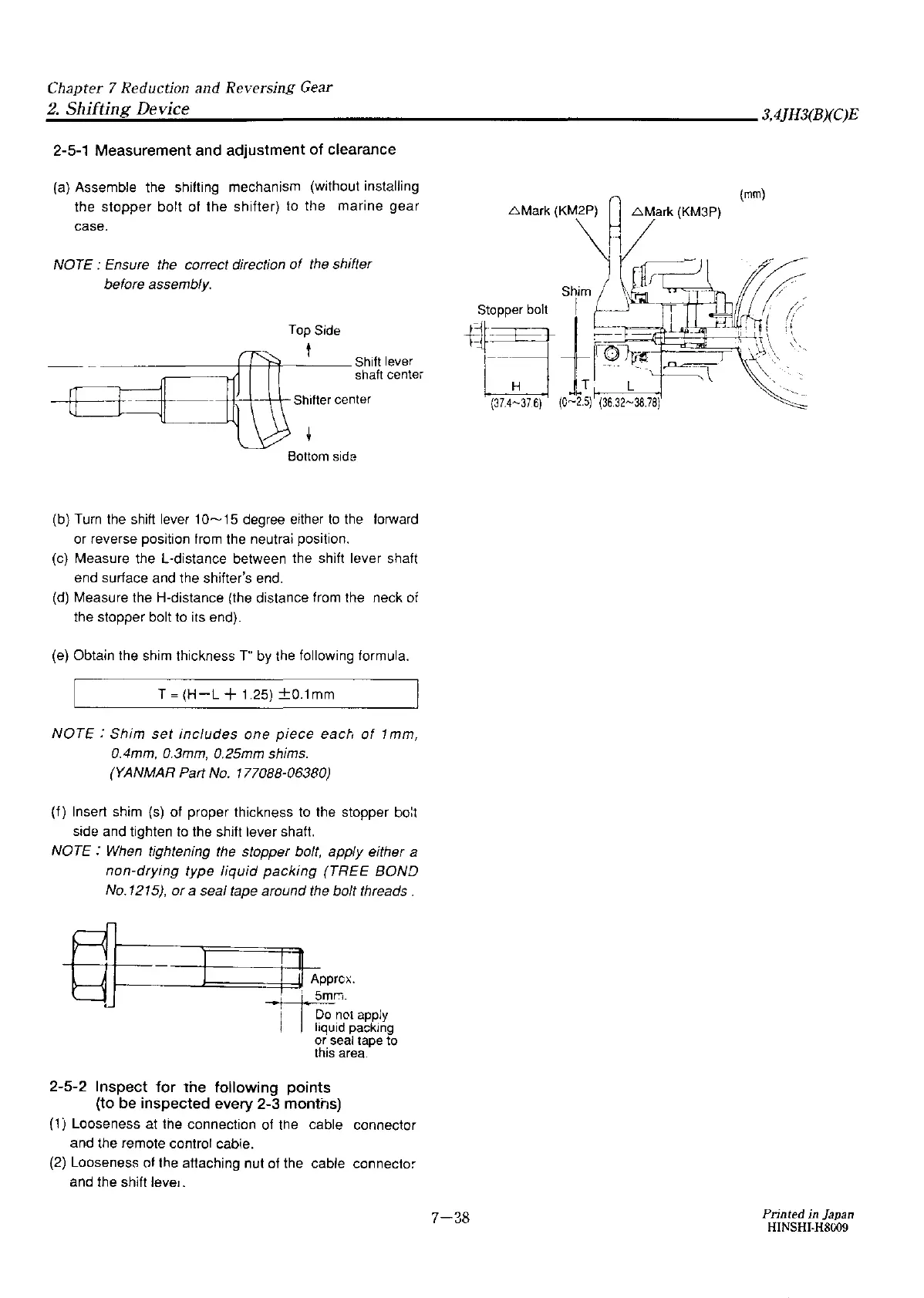 the stopper bolt of the shifter) to the marine gear