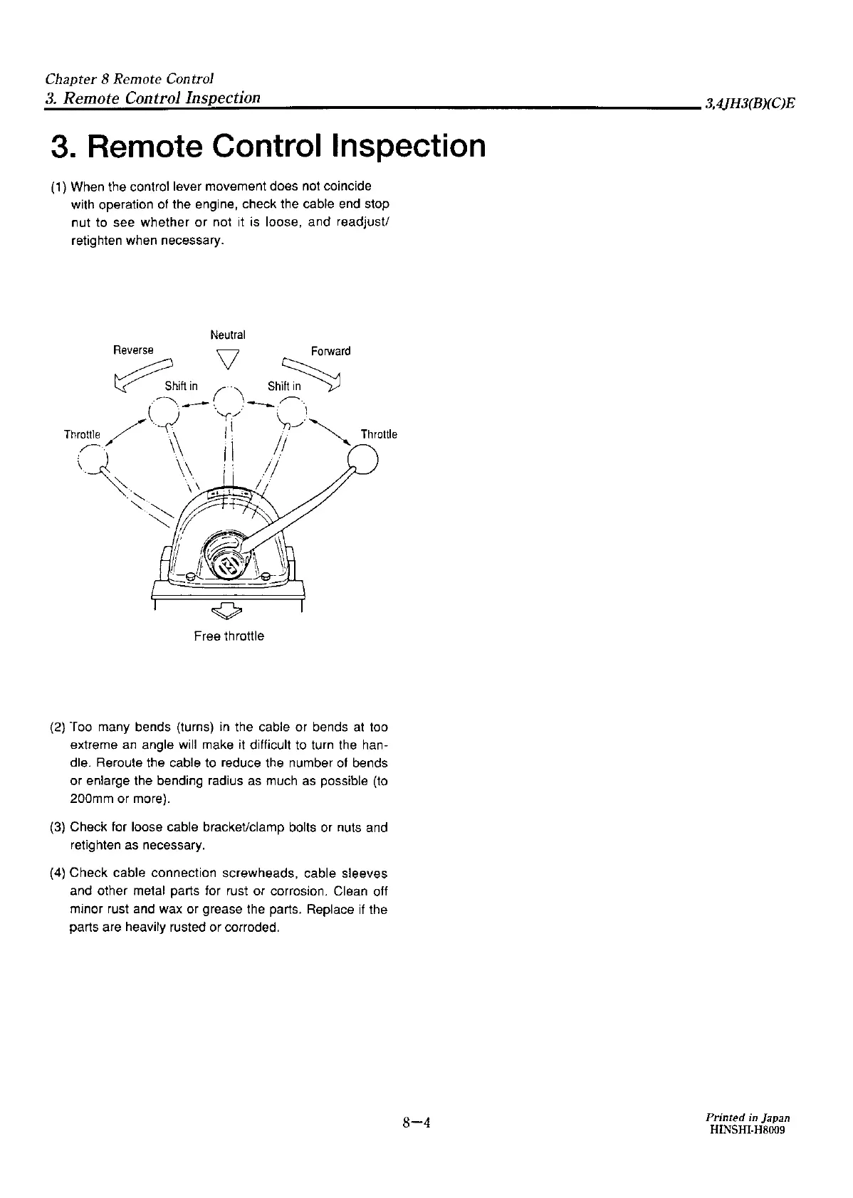 the engine, check the cable end stop