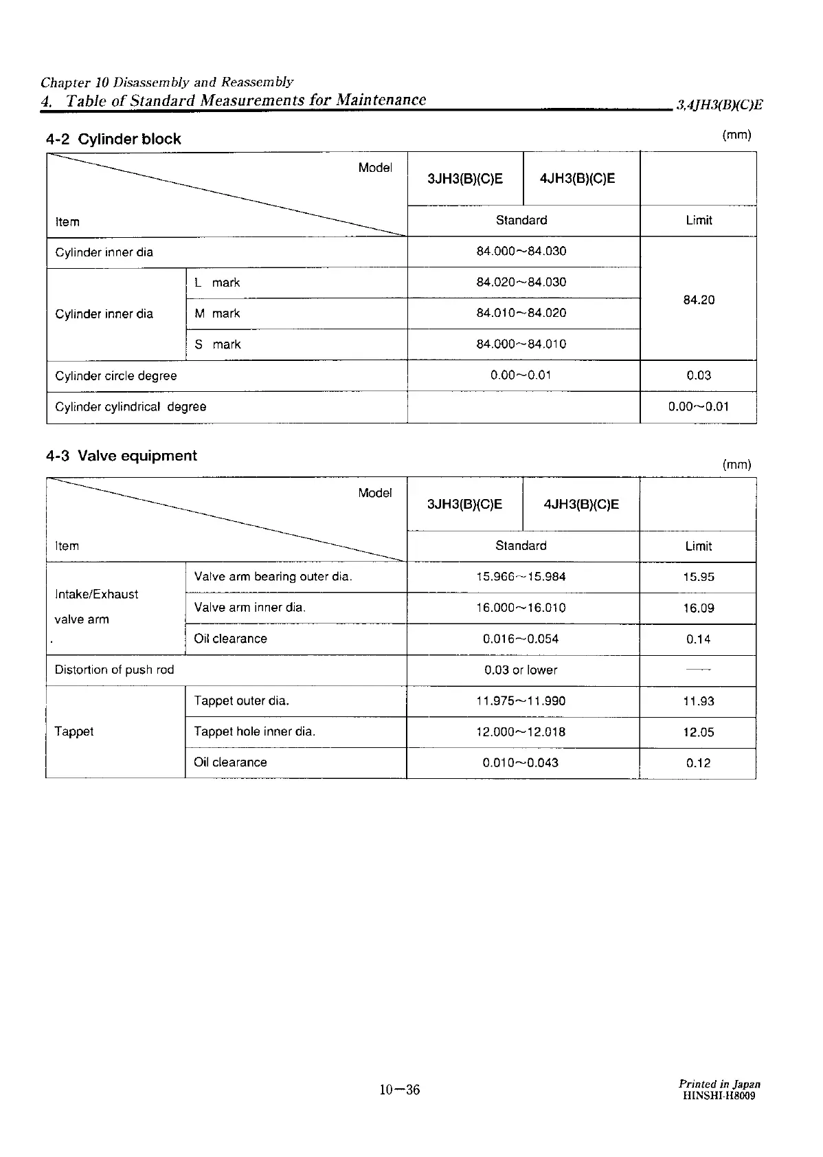 Yanmar 4JH3BE - 4-2 Cylinder block; 4-3 Valve equipment