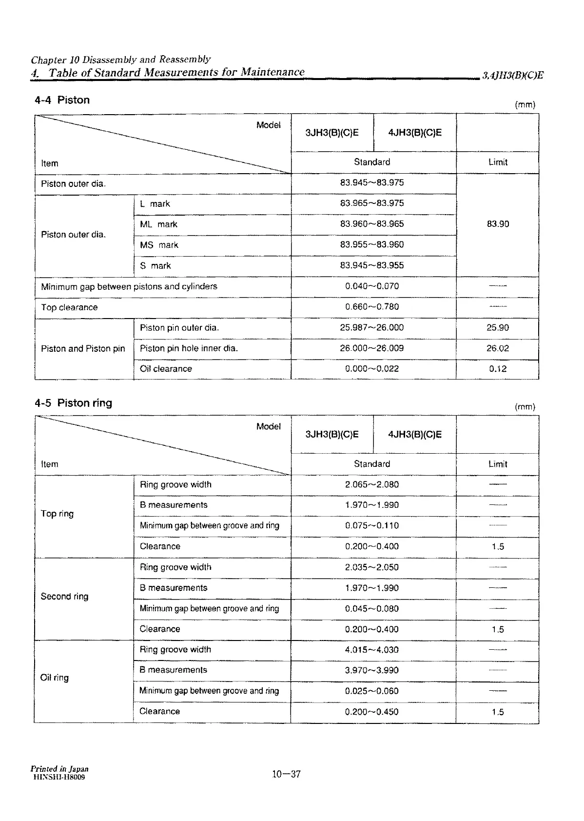 Yanmar 4JH3BE - 4-4 Piston; 4-5 Piston ring