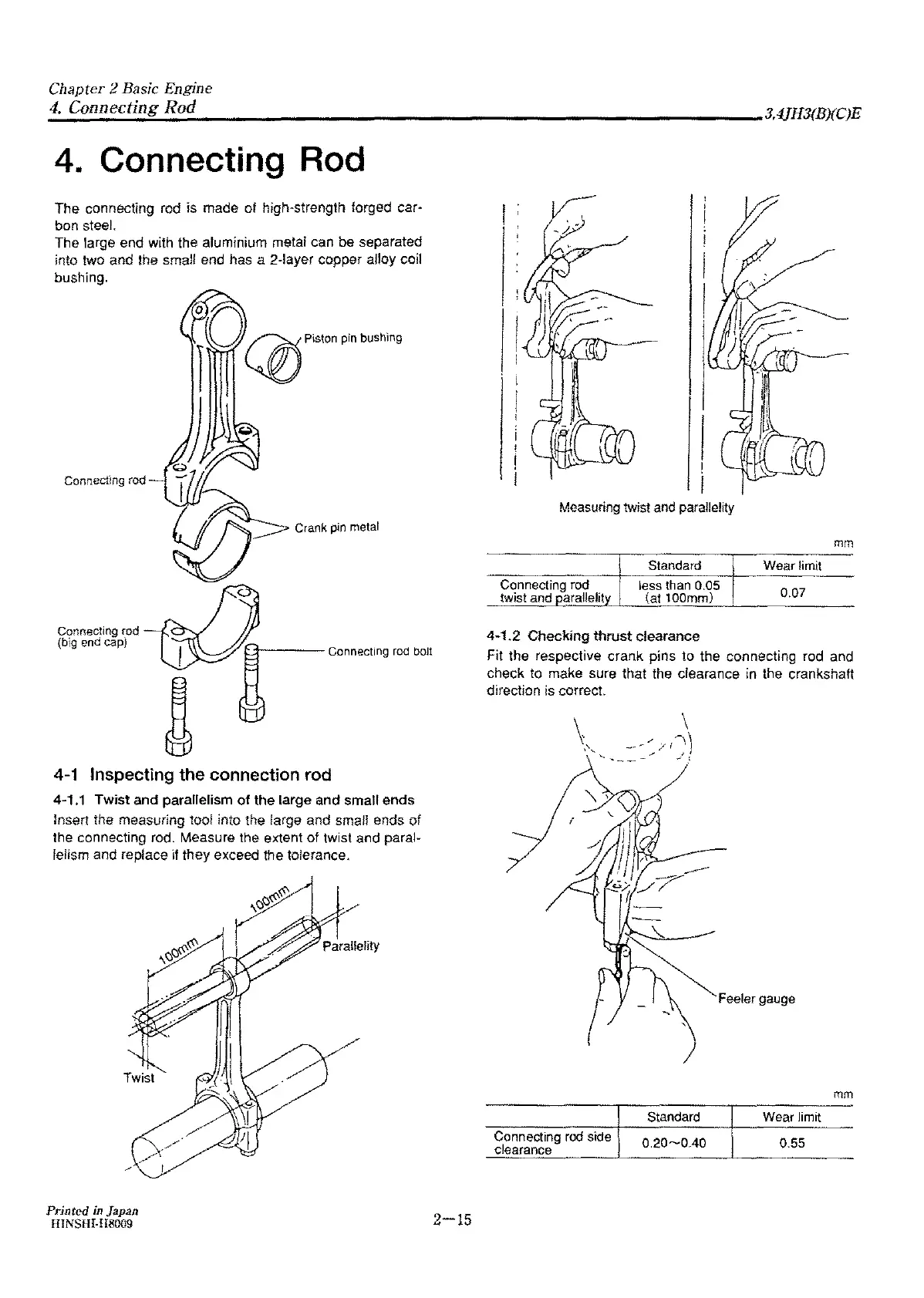 the connecting rod. Measure the extent of twist and paral-