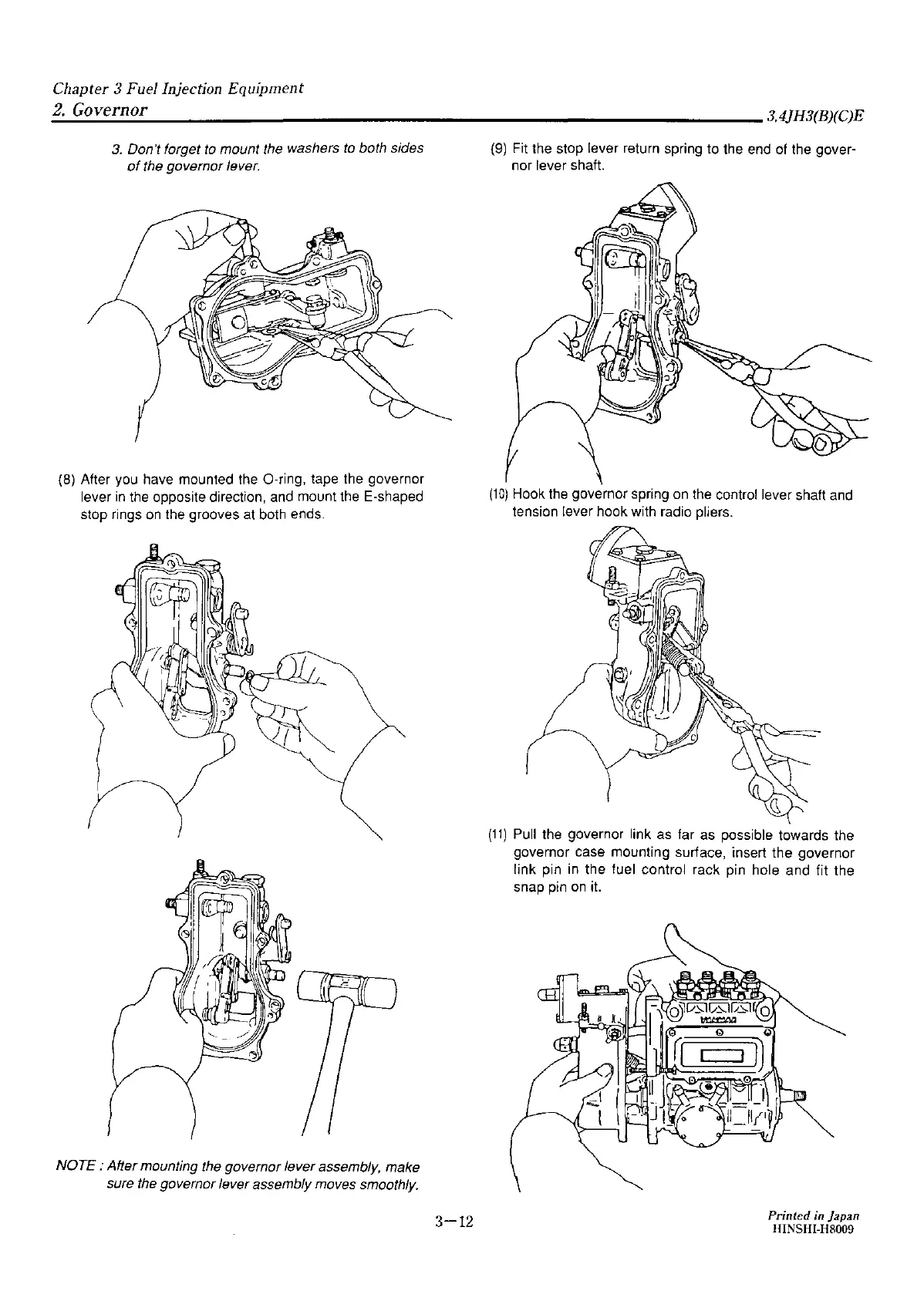 sure the governor lever assembly moves smoothly.