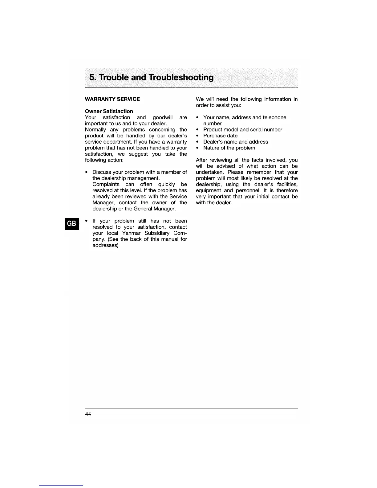 Yanmar 4JH3CE - Warranty