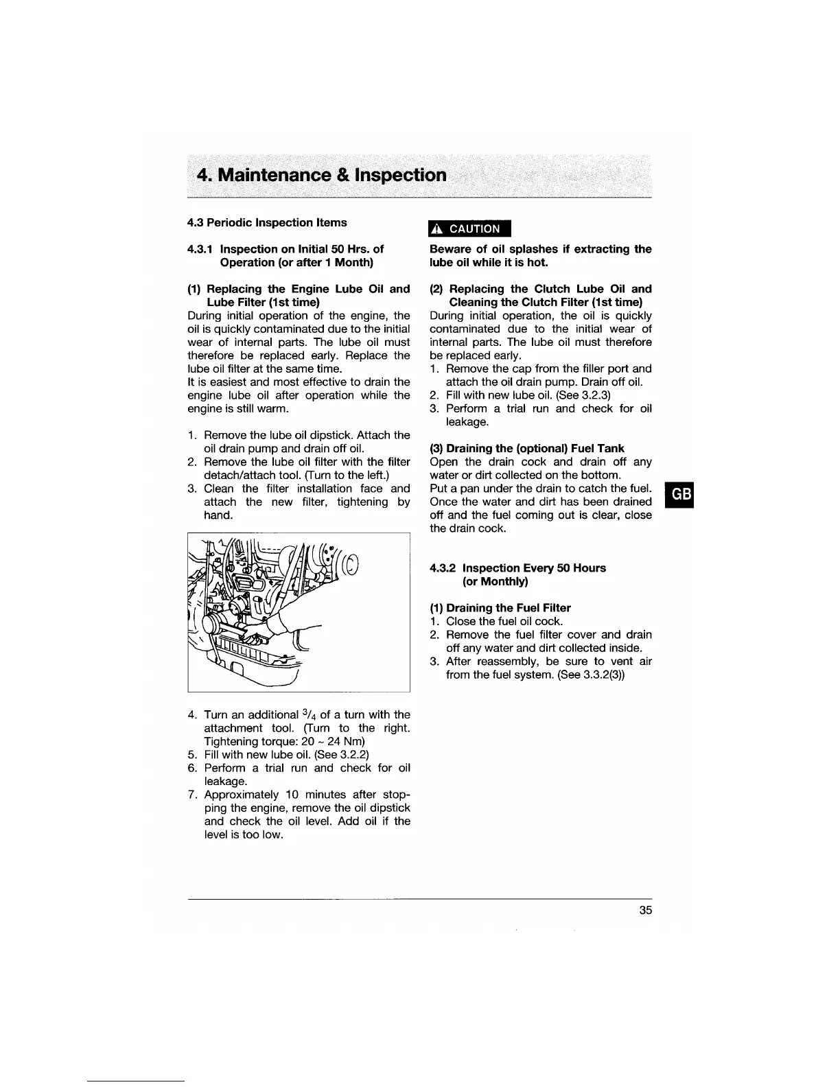 Yanmar 4JH3E - Periodic Inspection Items; Inspection on Initial 50 Hrs. of Operation (or after 1 Month); Inspection Every 50 Hours (or Monthly)