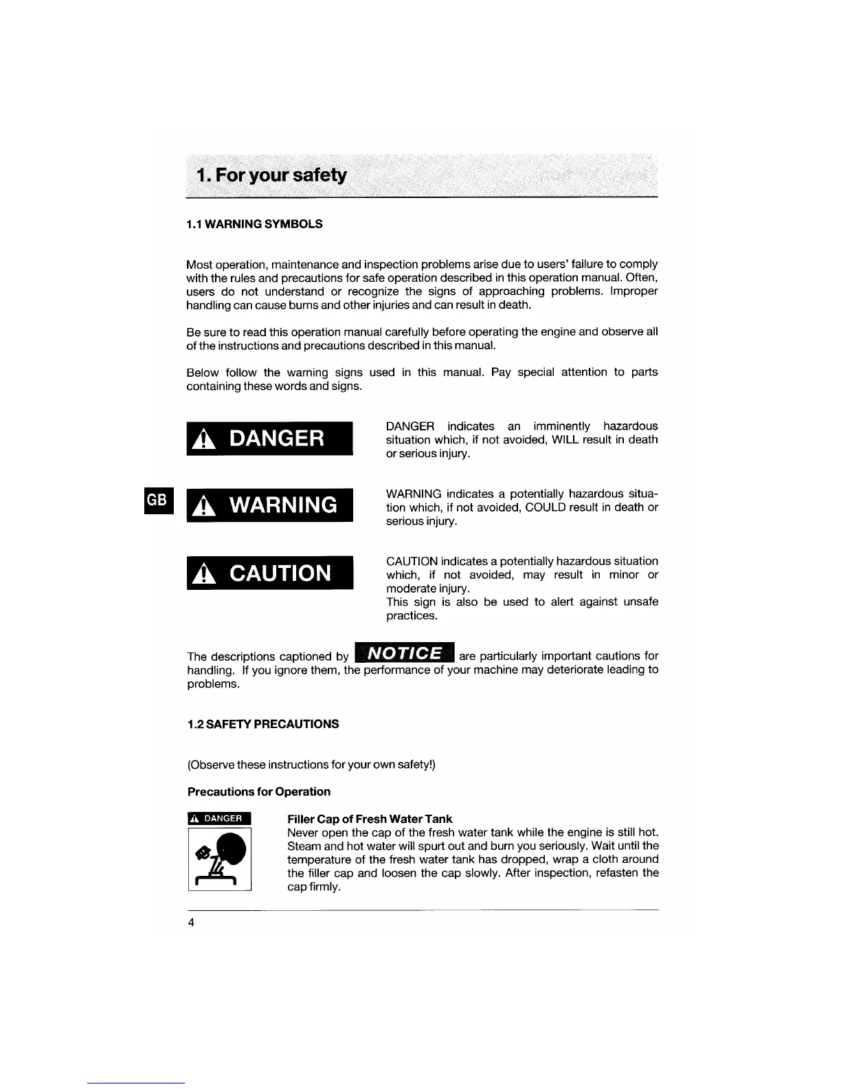 Yanmar 4JH3E - For Your Safety; Warning Symbols; Safety Precautions