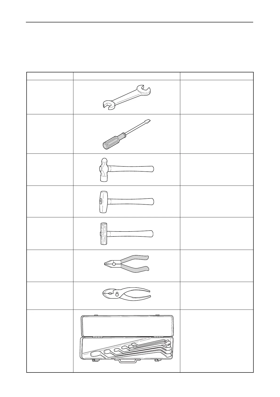 Name of tool Illustration Remarks