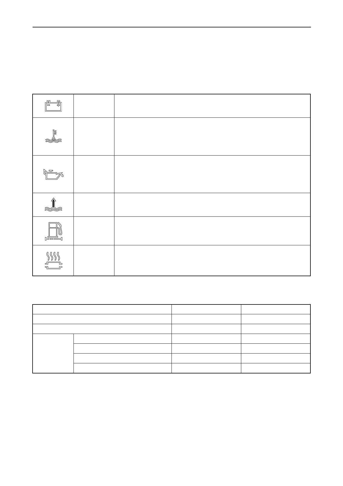 cannot warn the lack of the engine oil or the coolant. Make it a rule to check the alarm operation