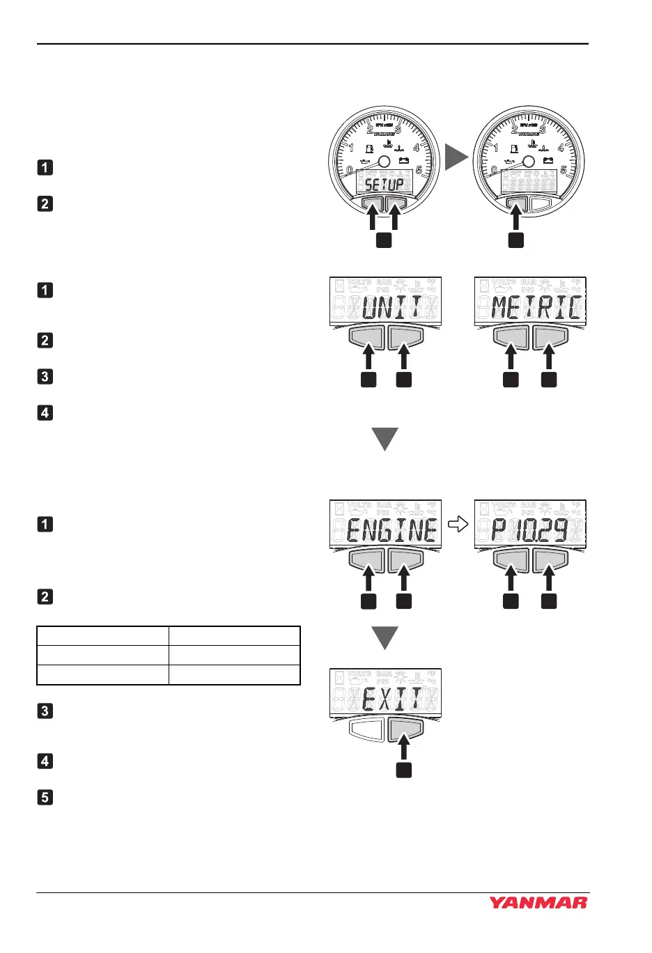 (Setting the temperature and pressure units and engine speed pulse)