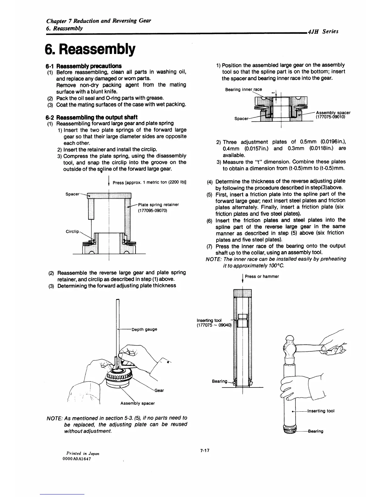 Yanmar 4JHE - Reduction and Reversing Gear: Reassembly Precautions; Reassembling the Output Shaft