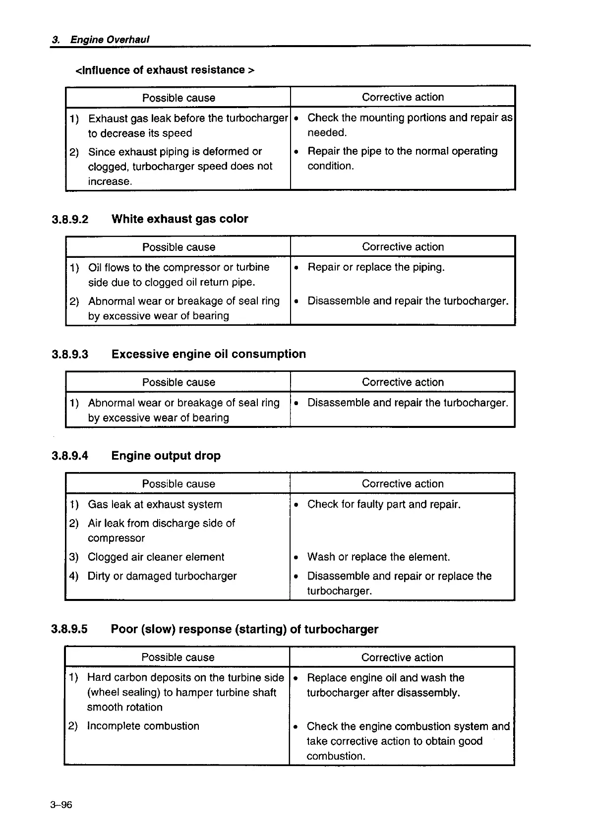 Yanmar 6LP-DTE - White Exhaust Gas Color; Excessive Engine Oil Consumption; Engine Output Drop; Poor;Slow Response;Starting of Turbocharger