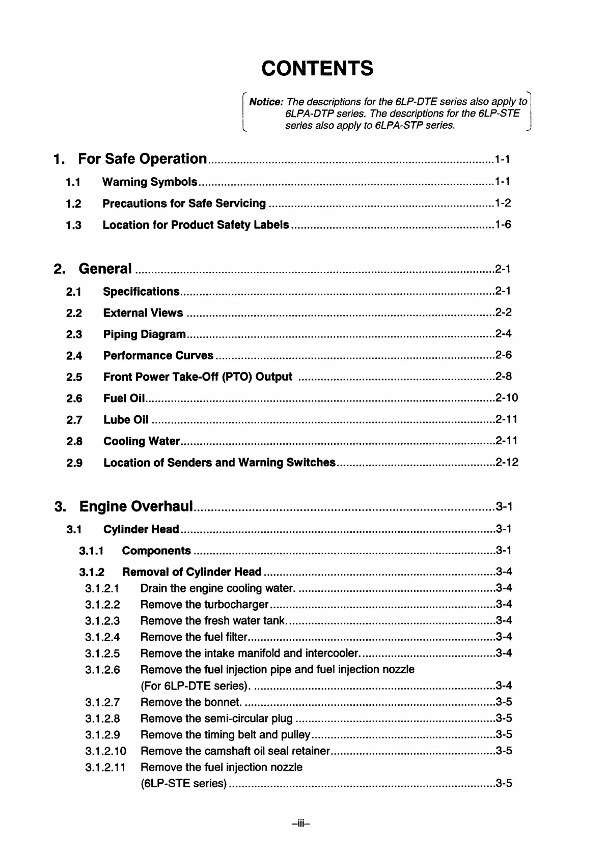 Yanmar 6LP-DTE - Contents