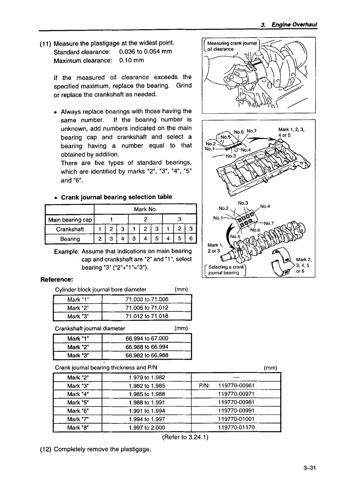 Yanmar 6LP-DTE - Crank Journal Bearing Selection Table