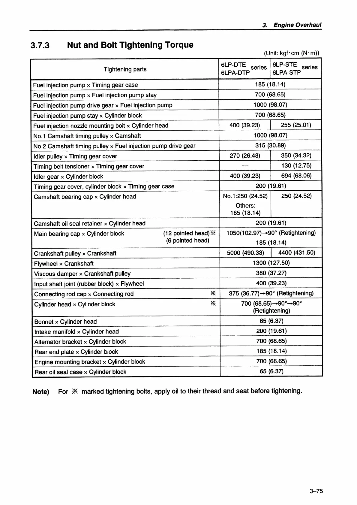 Yanmar 6LP-STE - Nut and Bolt Tightening Torque