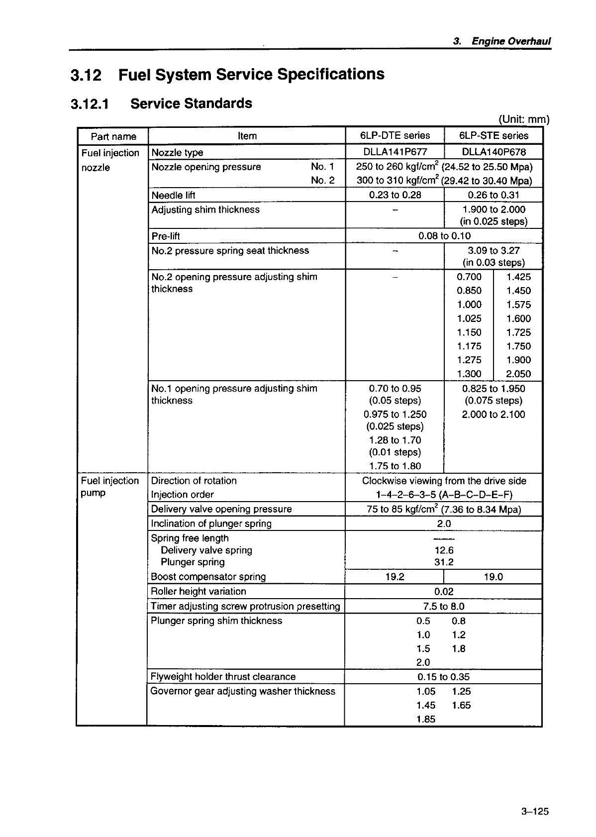 Yanmar 6LP-STE - Fuel System Service Specifications