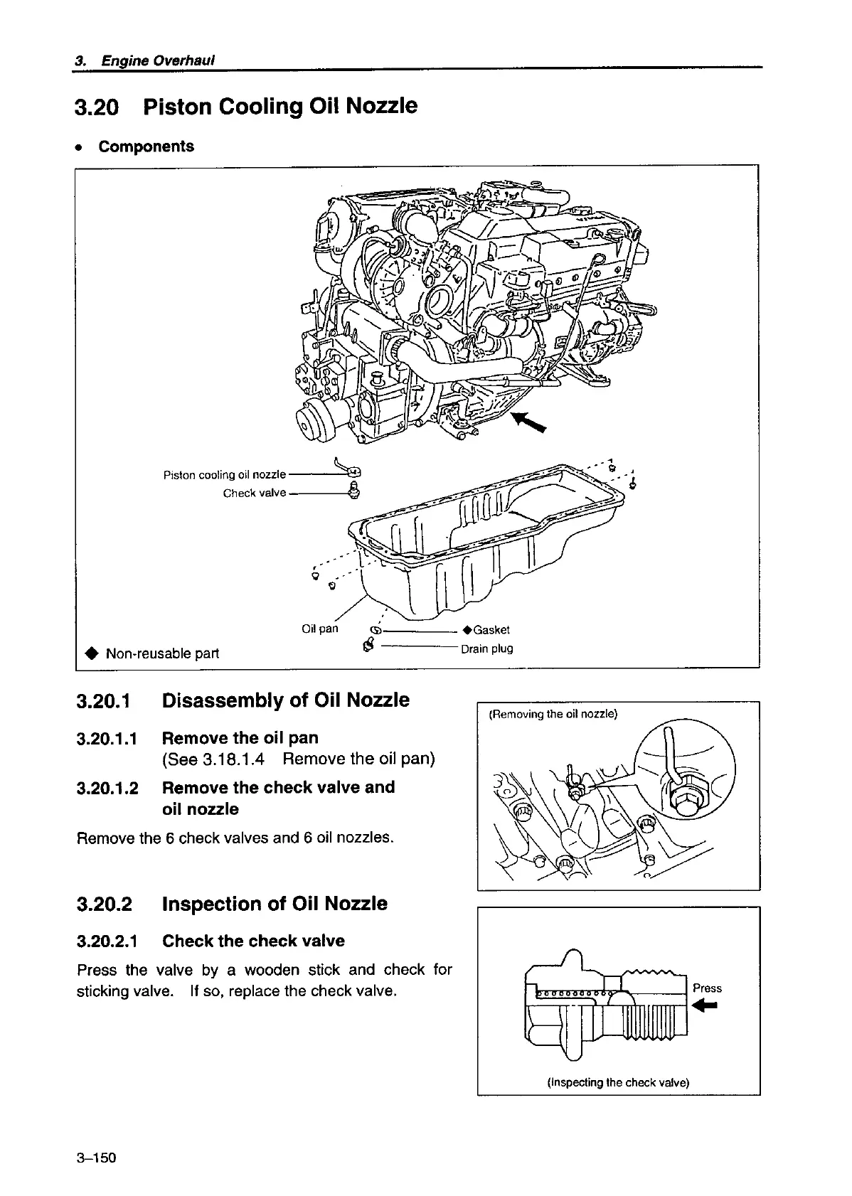Yanmar 6LP-STE - Piston Cooling Oil Nozzle Components; Disassembly;Inspection of Oil Nozzle