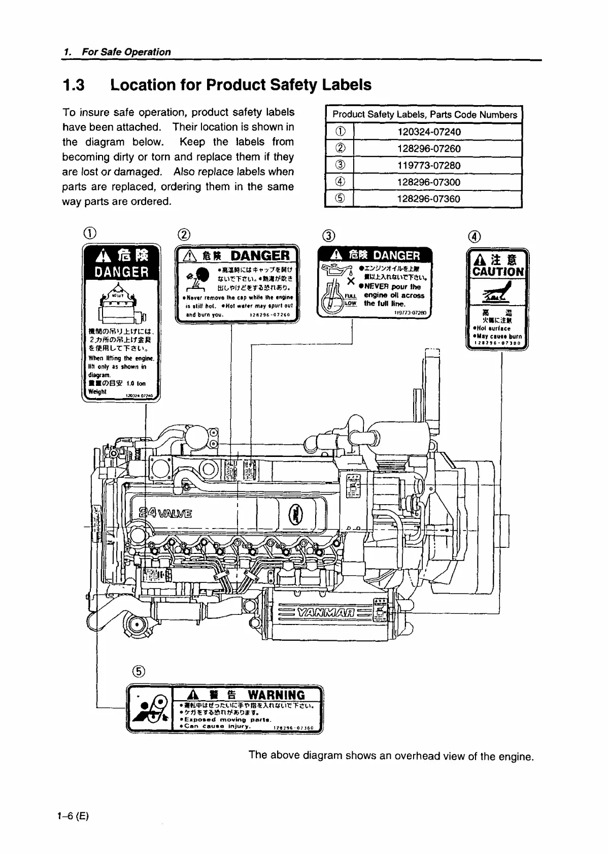 Yanmar 6LP-STE - Location for Product Safety Labels