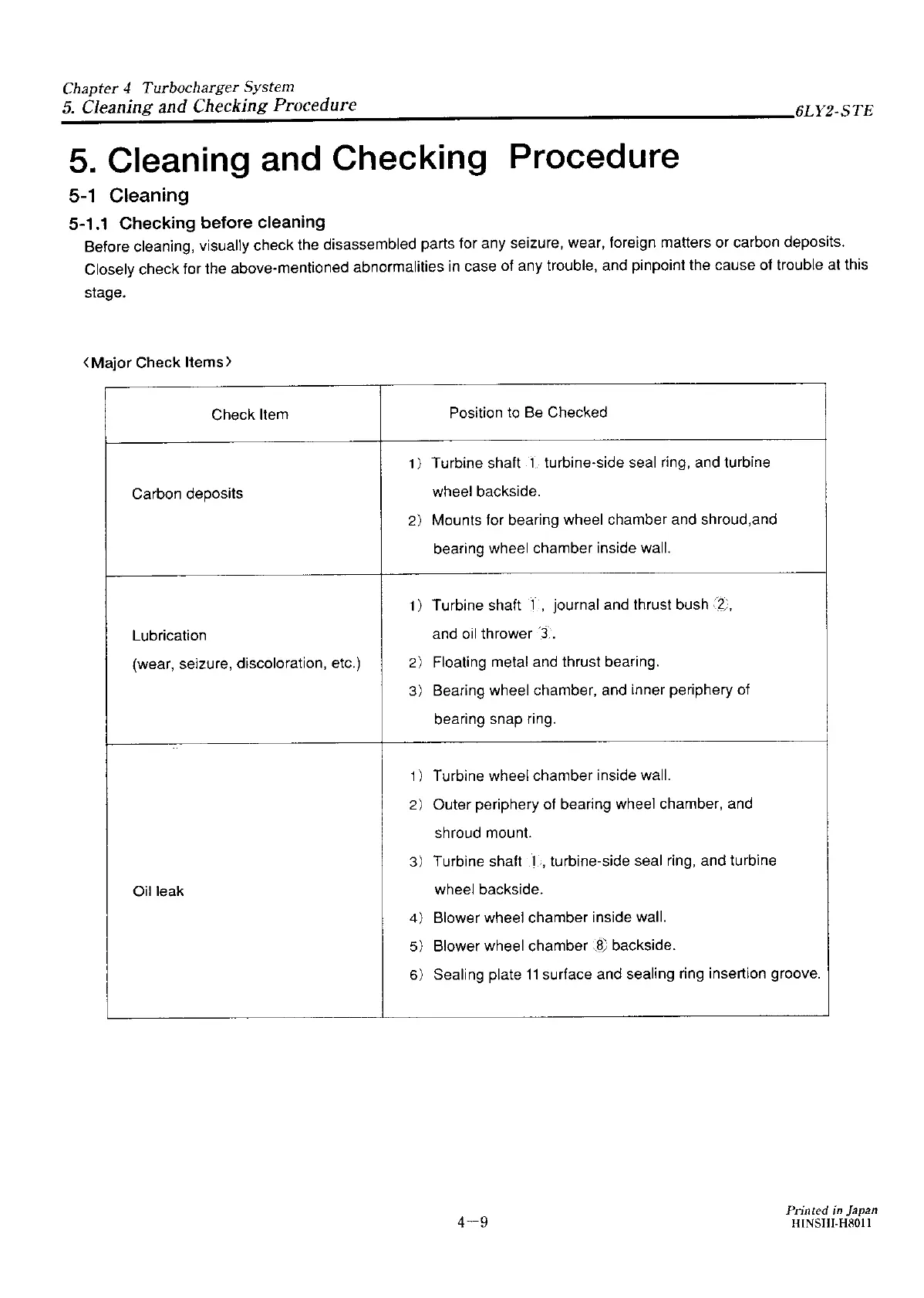 Yanmar 6LY2-STE - Cleaning and Checking Procedure; Checking before Cleaning