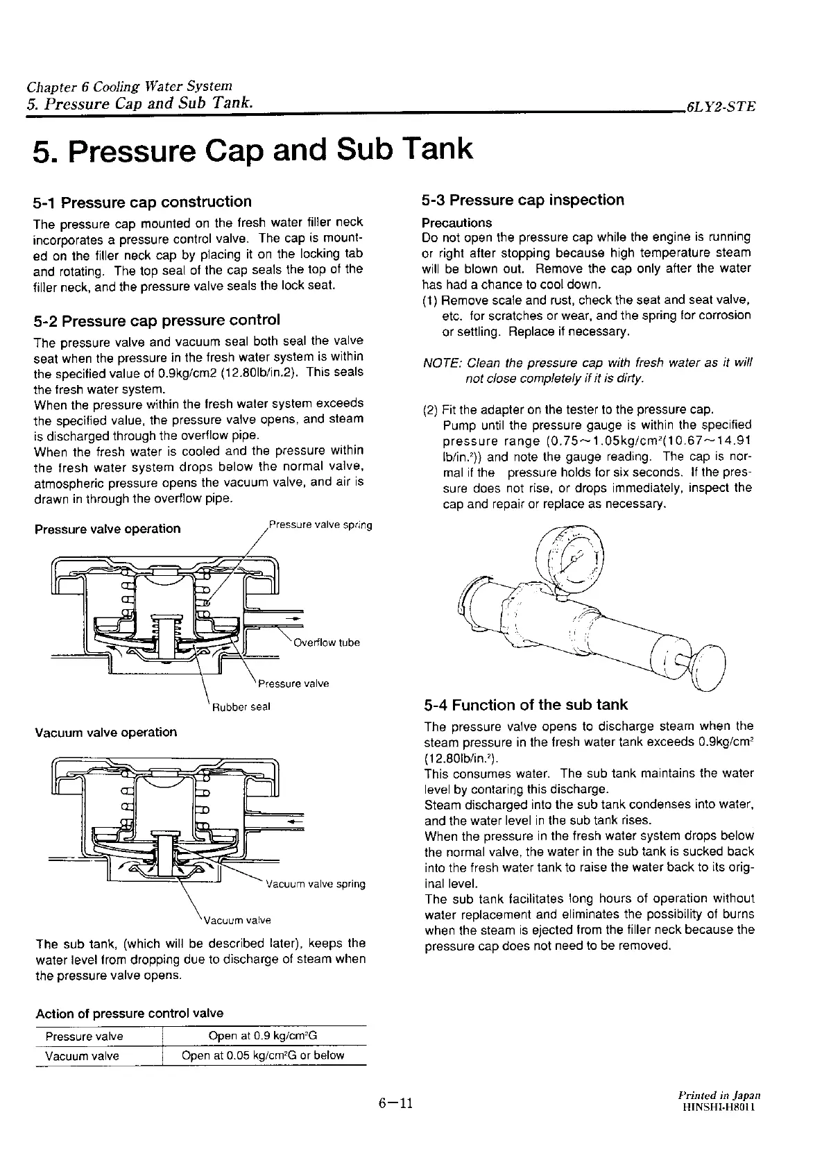 Yanmar 6LY2-STE - Pressure Cap Construction; Pressure Cap Control; Pressure Cap Inspection; Function of the Sub Tank