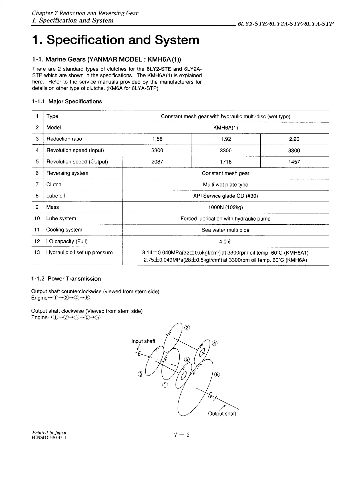 Yanmar 6LY2-STE - Marine Gears; Major Specifications