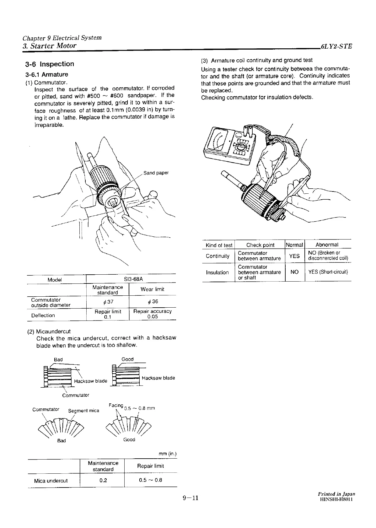 Yanmar 6LY2-STE - Armature; Armature Coil Continuity and Ground Test