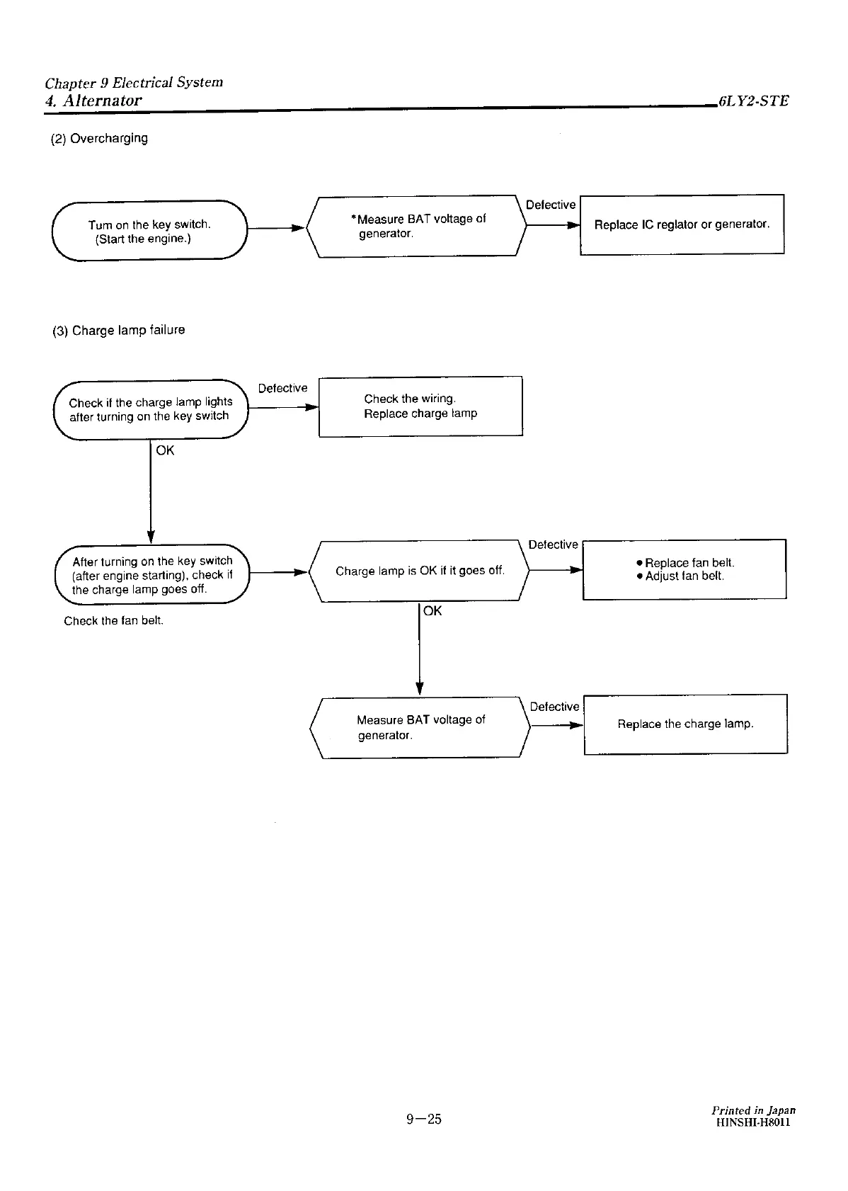 Yanmar 6LY2-STE - Overcharging; Charge Lamp Failure