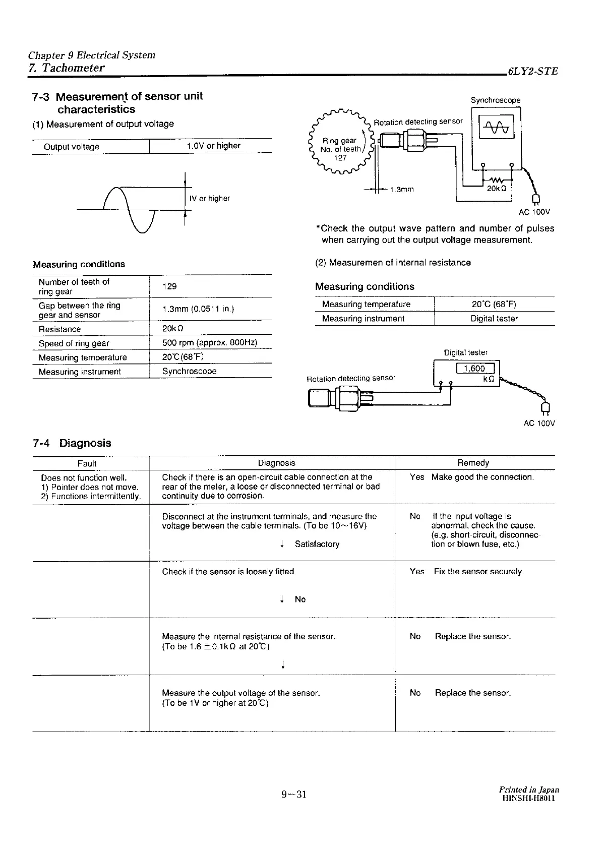 Yanmar 6LY2-STE - Measurement of Sensor Unit Characteristics